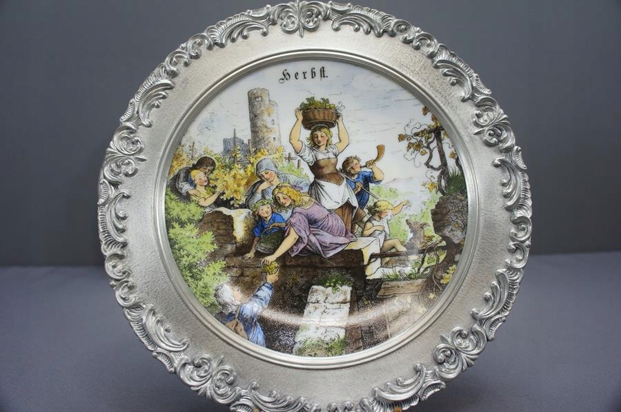 - Гарні чотири порцелянові тарілки з жерстяними тарілками.