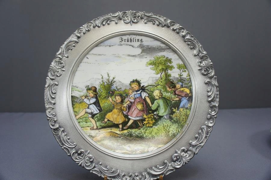 - Гарні чотири порцелянові тарілки з жерстяними тарілками.