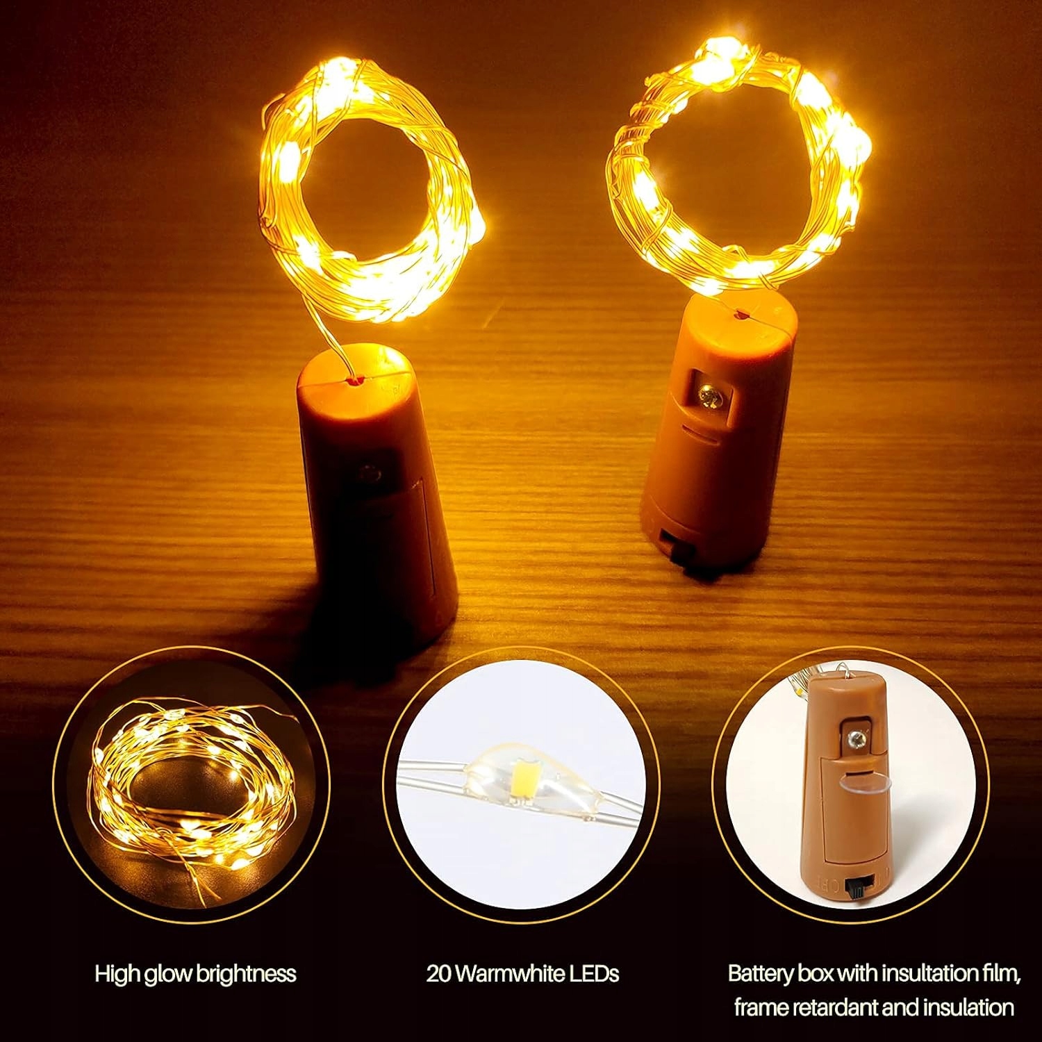 КРАСИВІ РОМАНТИЧНІ СВІТЛОДІОДНІ ЛАМПИ ДЛЯ ПЛЯШОК ТЕПЛИЙ БІЛИЙ КОМПЛЕКТ