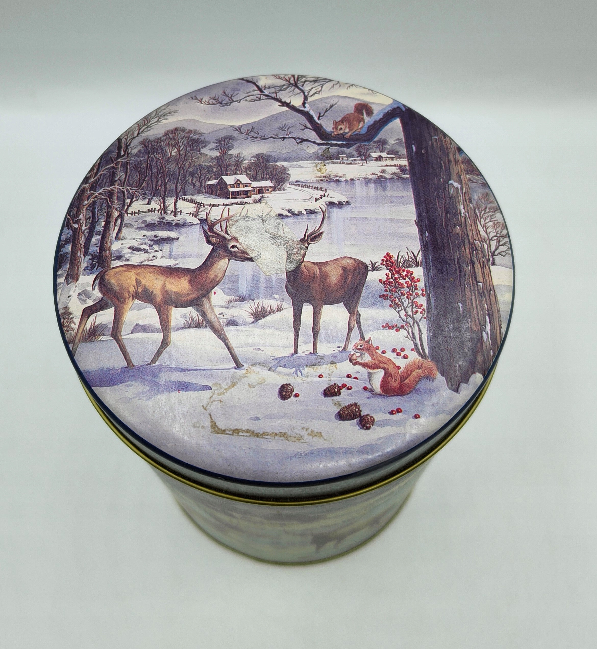 гарна старенька БАНКА, зима ДВА молодих оленя 15см.