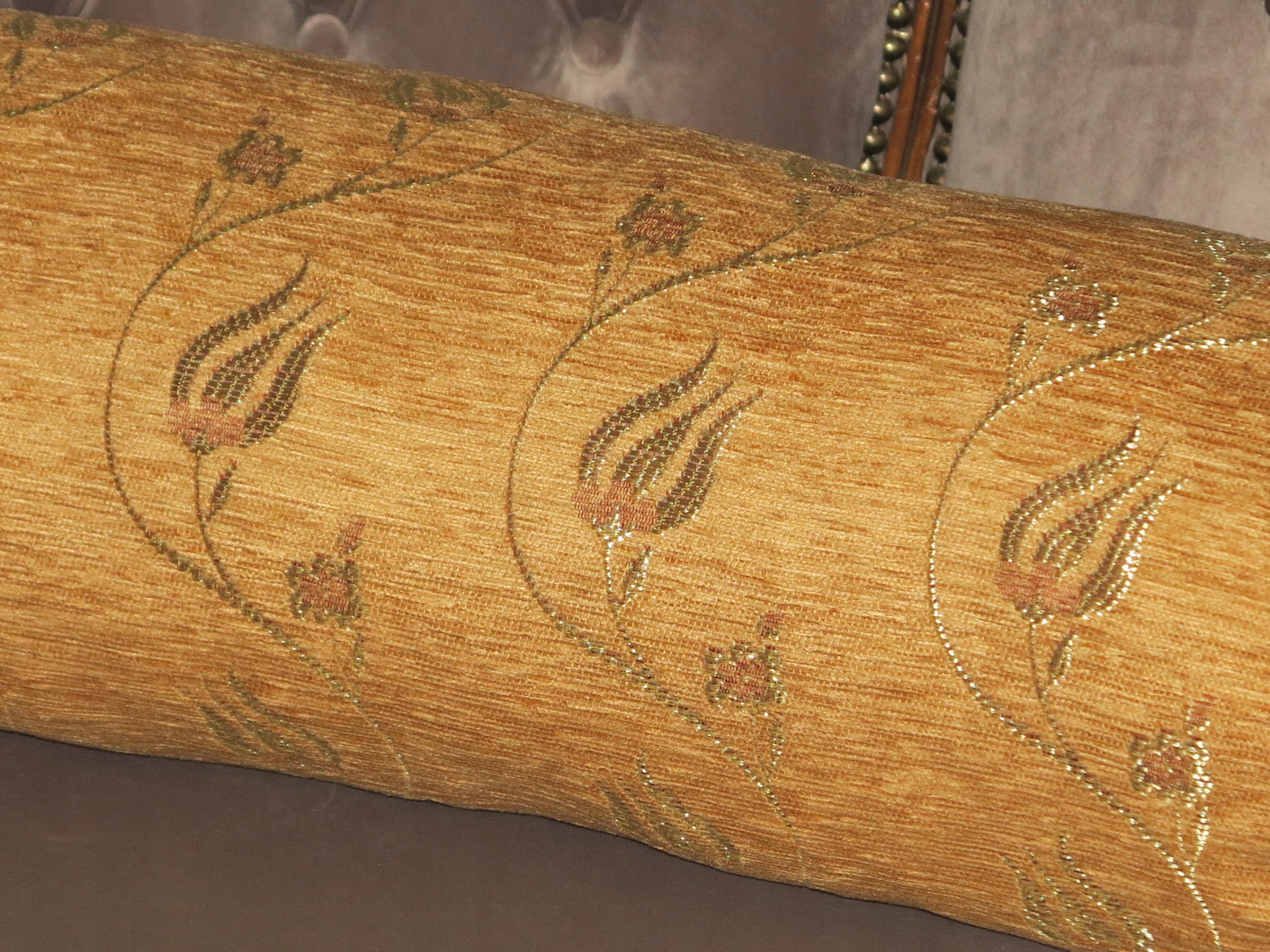 подушки для подушок-бітних великих декоративних роликів, виготовлених з оксамитового гобелену, із золотистими стильними конструкціями. Ролик із синтетичною вставкою- м'який і пухнастий