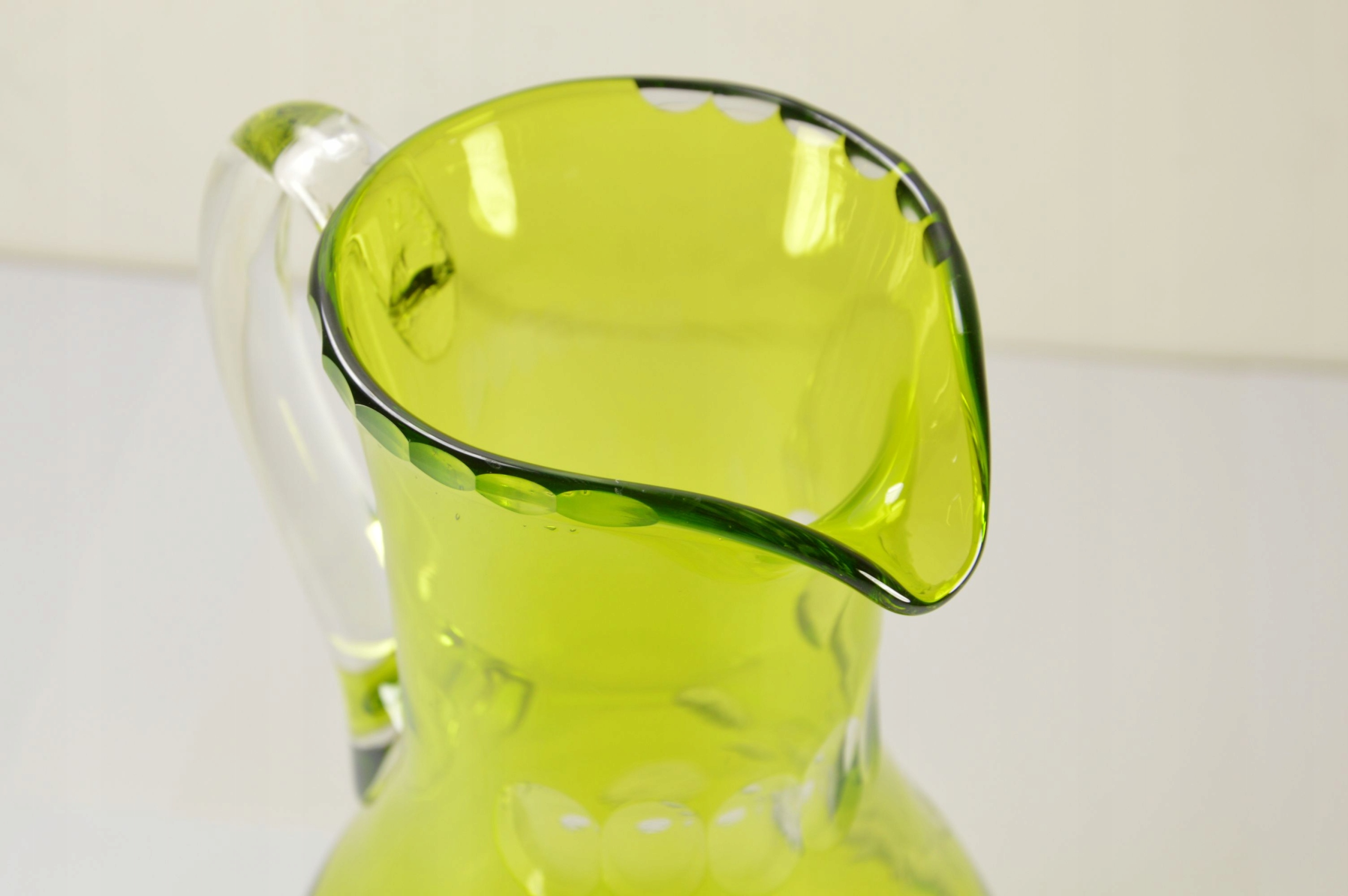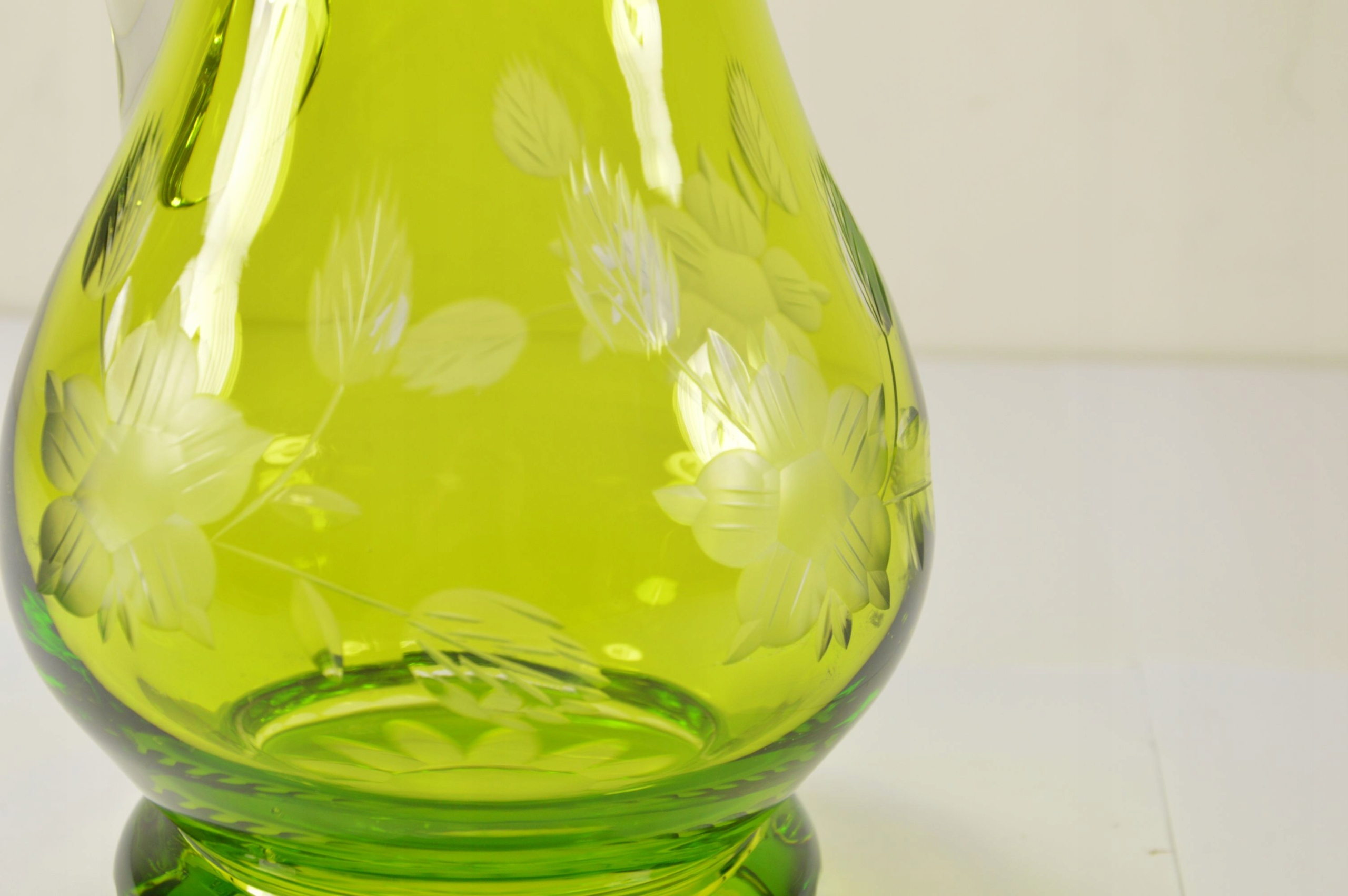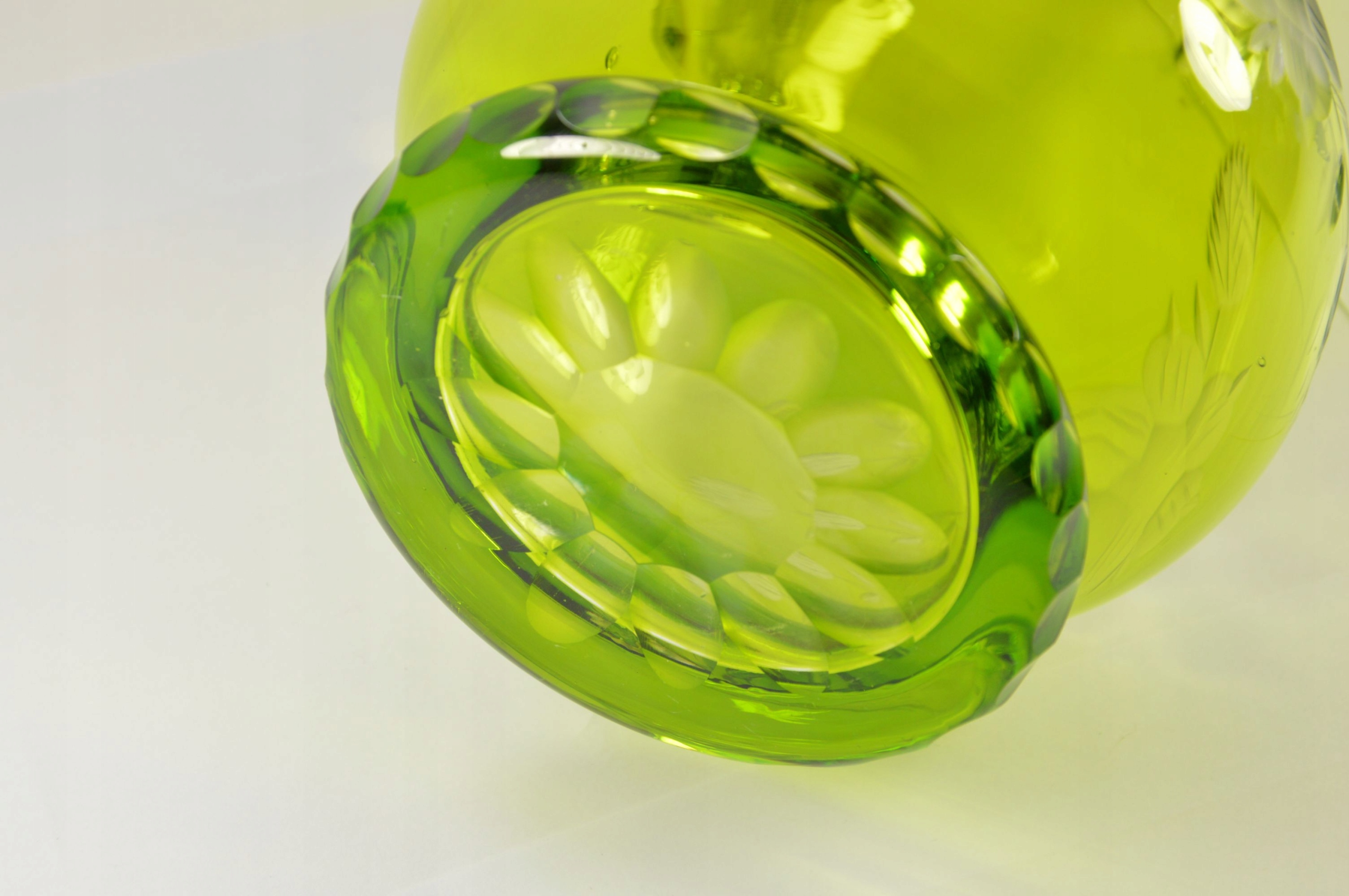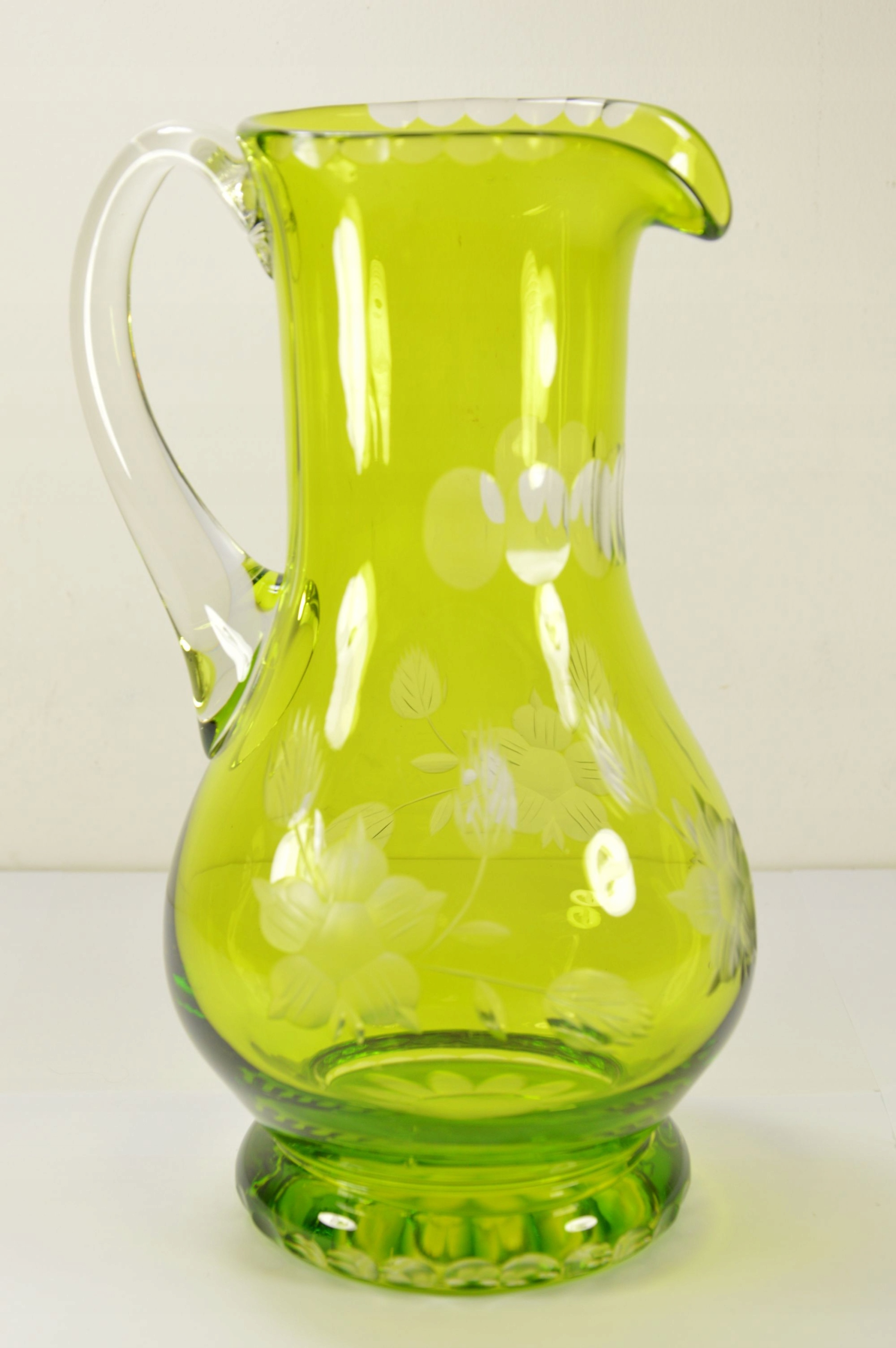 надзвичайно красивий, великий, скляний глечик. Пляшка зелену склянку, мелена, прикрашена квітковим мотивом. Глечик без пошкоджень та чіпа.