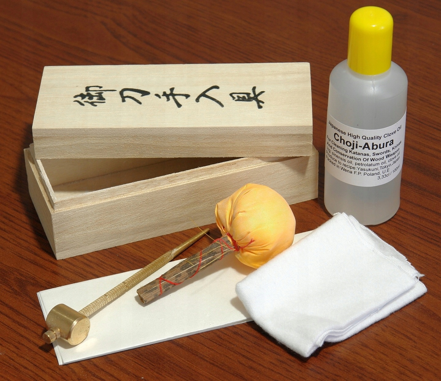 - хустинка (тканина) з чистої синьої бавовни для покриття леза маслом. рис (нугу-гамі) розміром прибл. 15 см х 45 см, складений в гармоніці