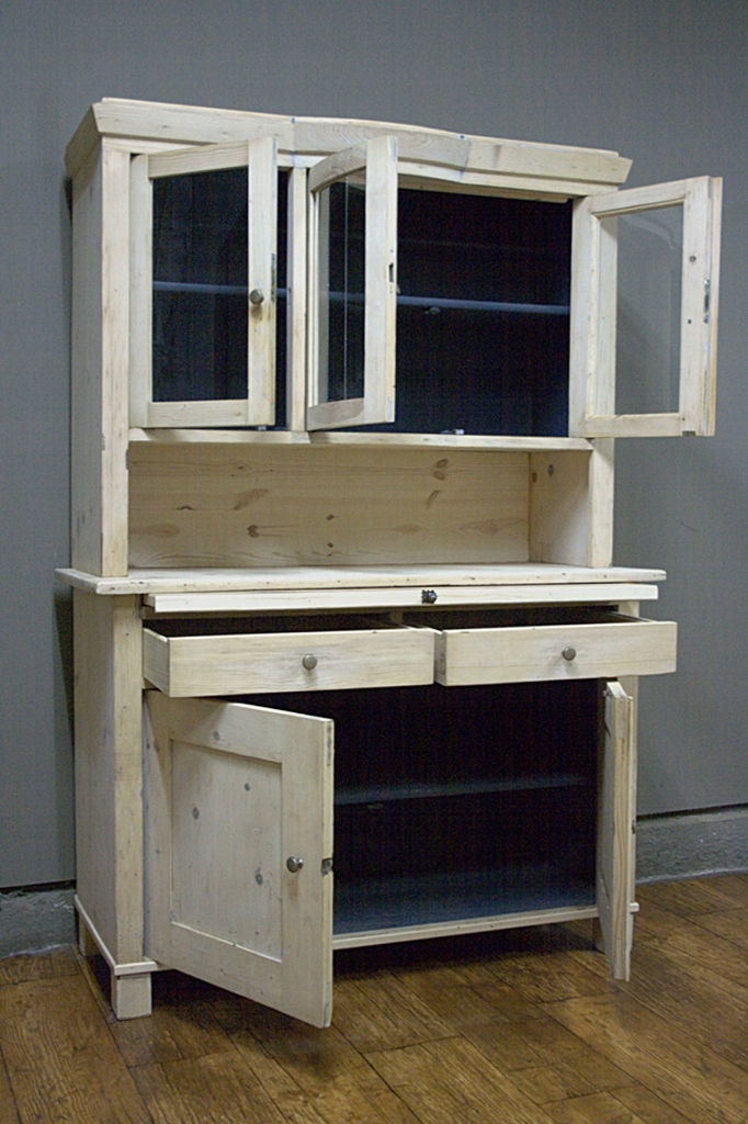 Двоєлементний сервант, на середніх практичних полицях, пофарбована внутрішня та нижня частина.