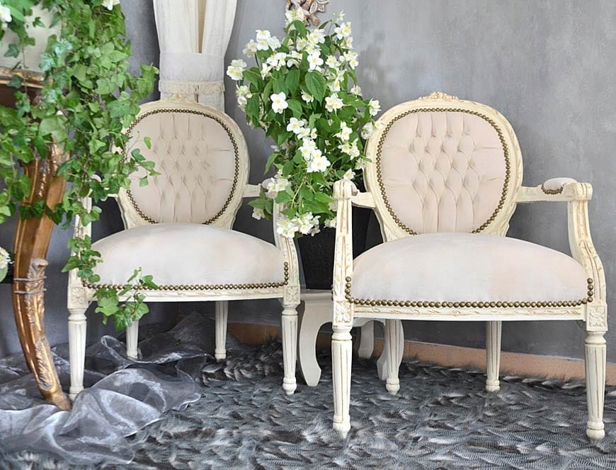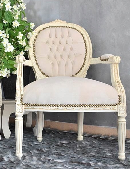 Красивий білий бежевий стілець із підлокітниками в стилі Луї