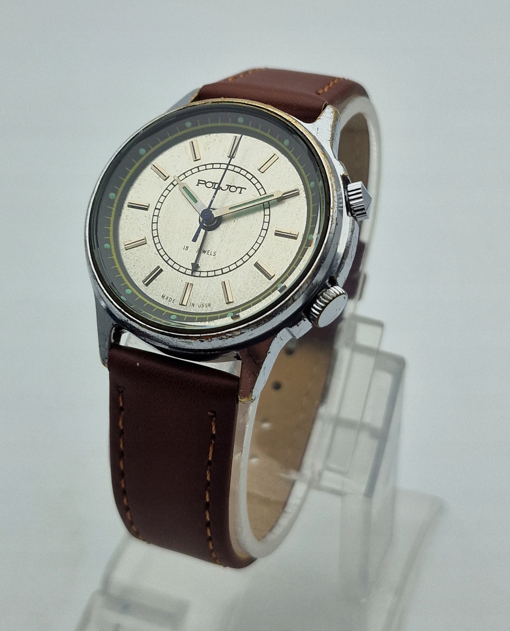 КРАСИВИЙ ЧОЛОВІЧИЙ ГОДИННИК З МЕХАНІЧНИМ БУДИЛЬНИКОМ POLJOT 18J 1970-х - РІДКІСТЬ