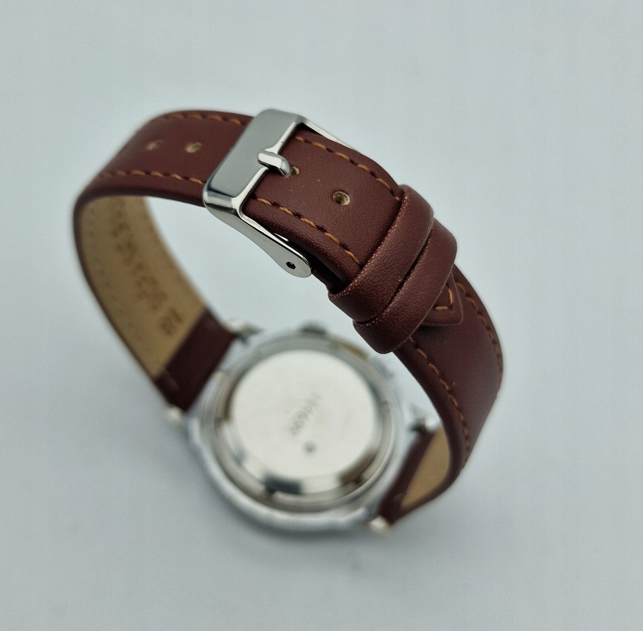 - Діаметр годинника 3,6 см без заводної головки та тримачів ремінця. Висота з ручками 4,2 см. У комплект входить новий коричневий ремінець з натуральної шкіри.