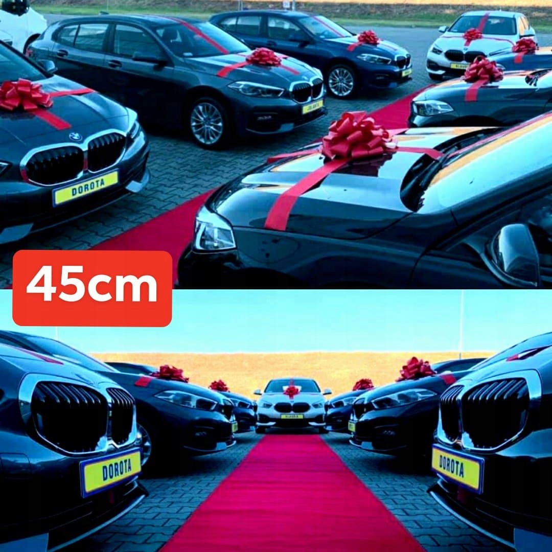 Типові автомобільні луки доступні в розмірах 60 і 80 см. Кожен бант цього розміру постачається з двома стрічками-вусиками, які йдуть вниз по масці.