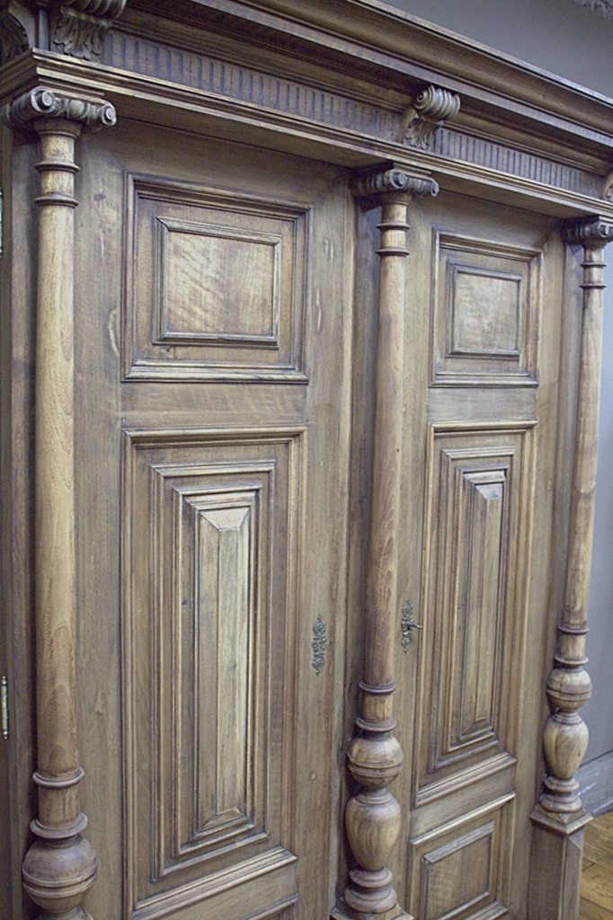 Штука меблів простої форми, прикрашеної гарними скарбничками. панелі та колони, завдяки чому все виглядає дуже ефектно.