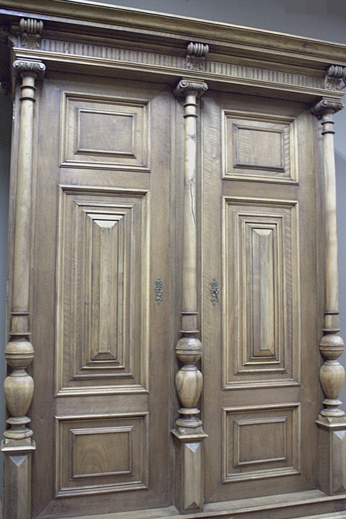 Штука меблів простої форми, прикрашеної гарними скарбничками. панелі та колони, завдяки чому все виглядає дуже ефектно.