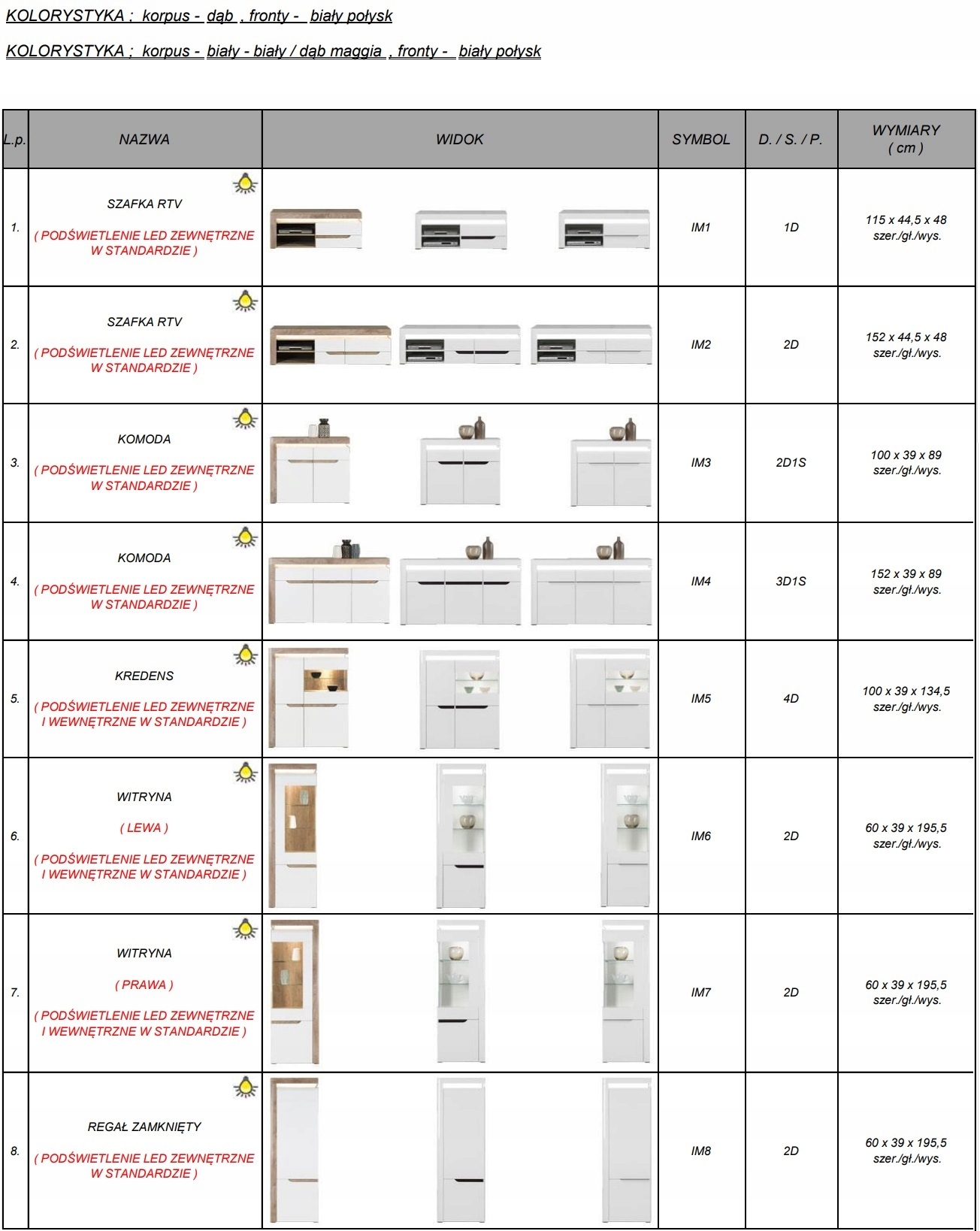 КОЛЬОРИ ; корпус - білий - білий / дуб маггія, фасади - білий глянець. повідомленням або по телефону за день-два до доставки.