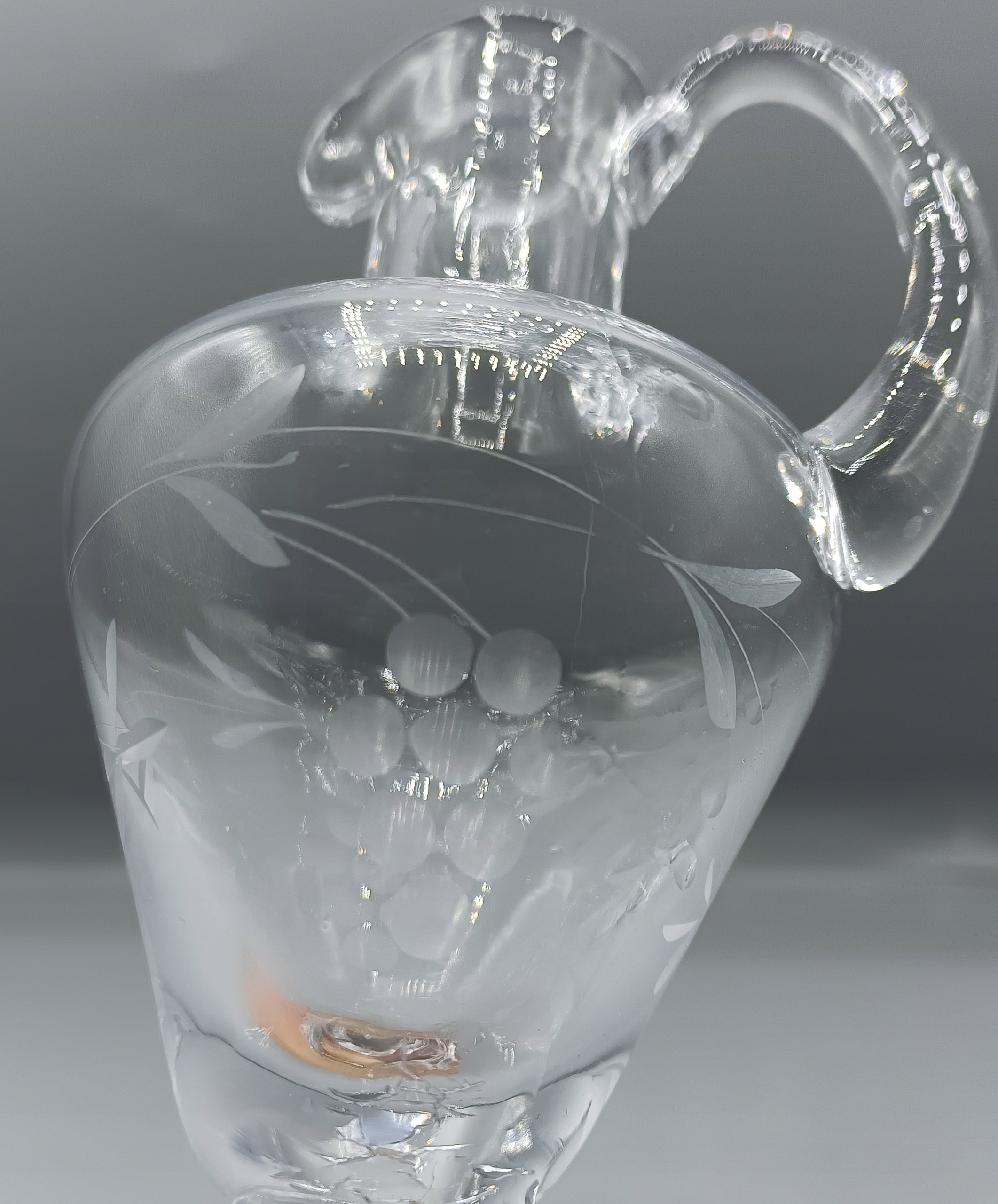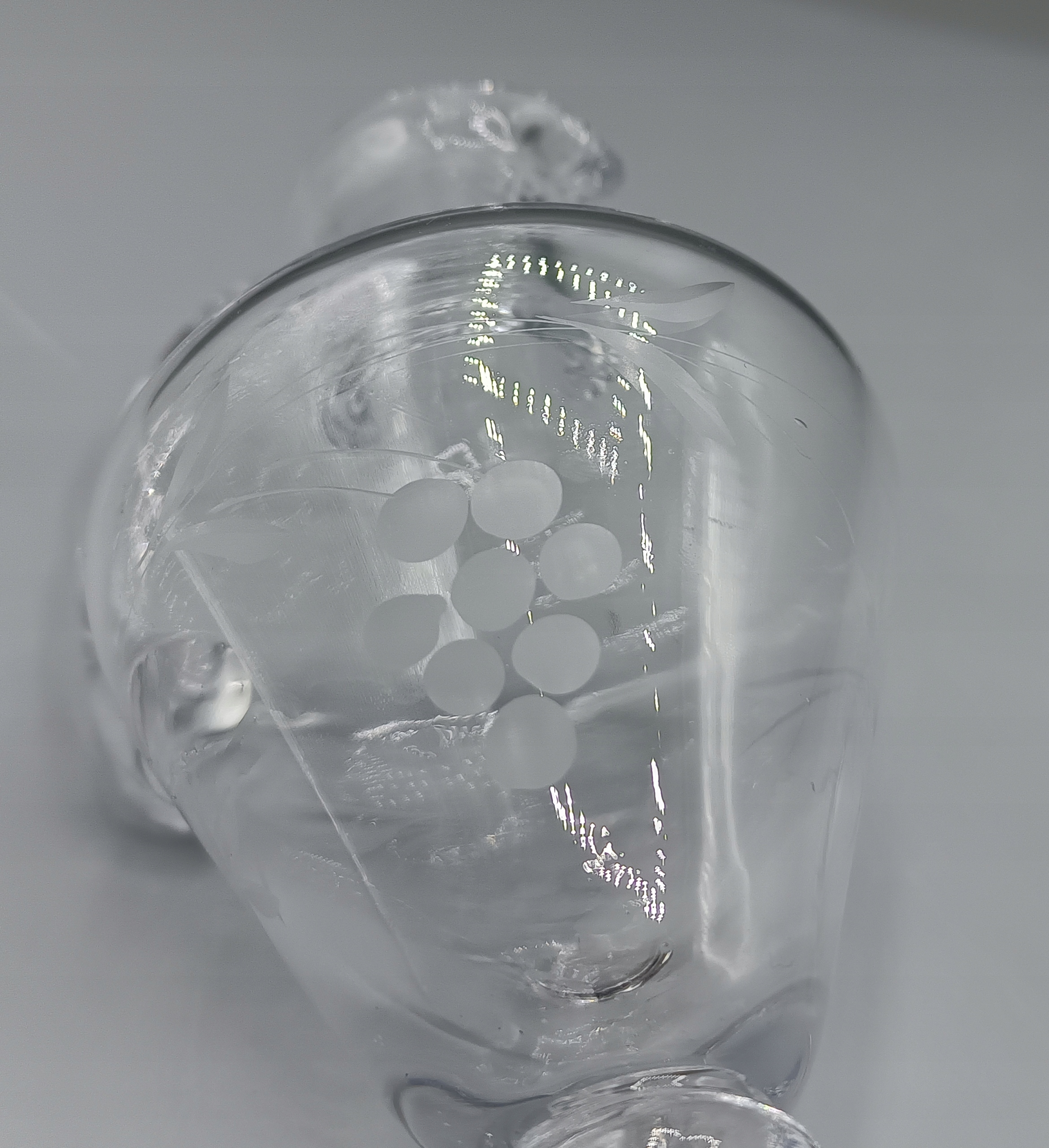 - дуже гарний - без тріщин або сколів у кришталі - відшліфований вручну - видно виноградне гроно та листя,
