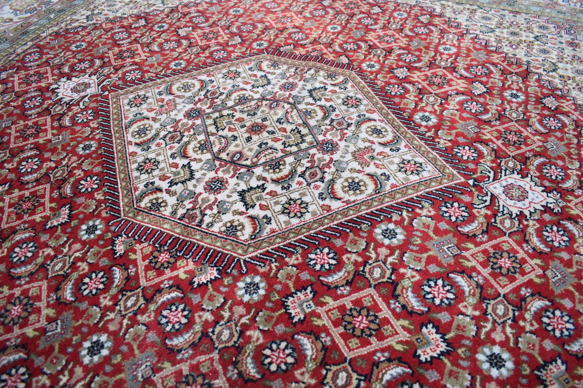 На наступному аукціоні я пропоную вам престижний квадратний килим INDO-BIDJAR, виготовлений з вовни найвищої якості, складного ручного ткання. Ціна в магазині понад 10 000 злотих.