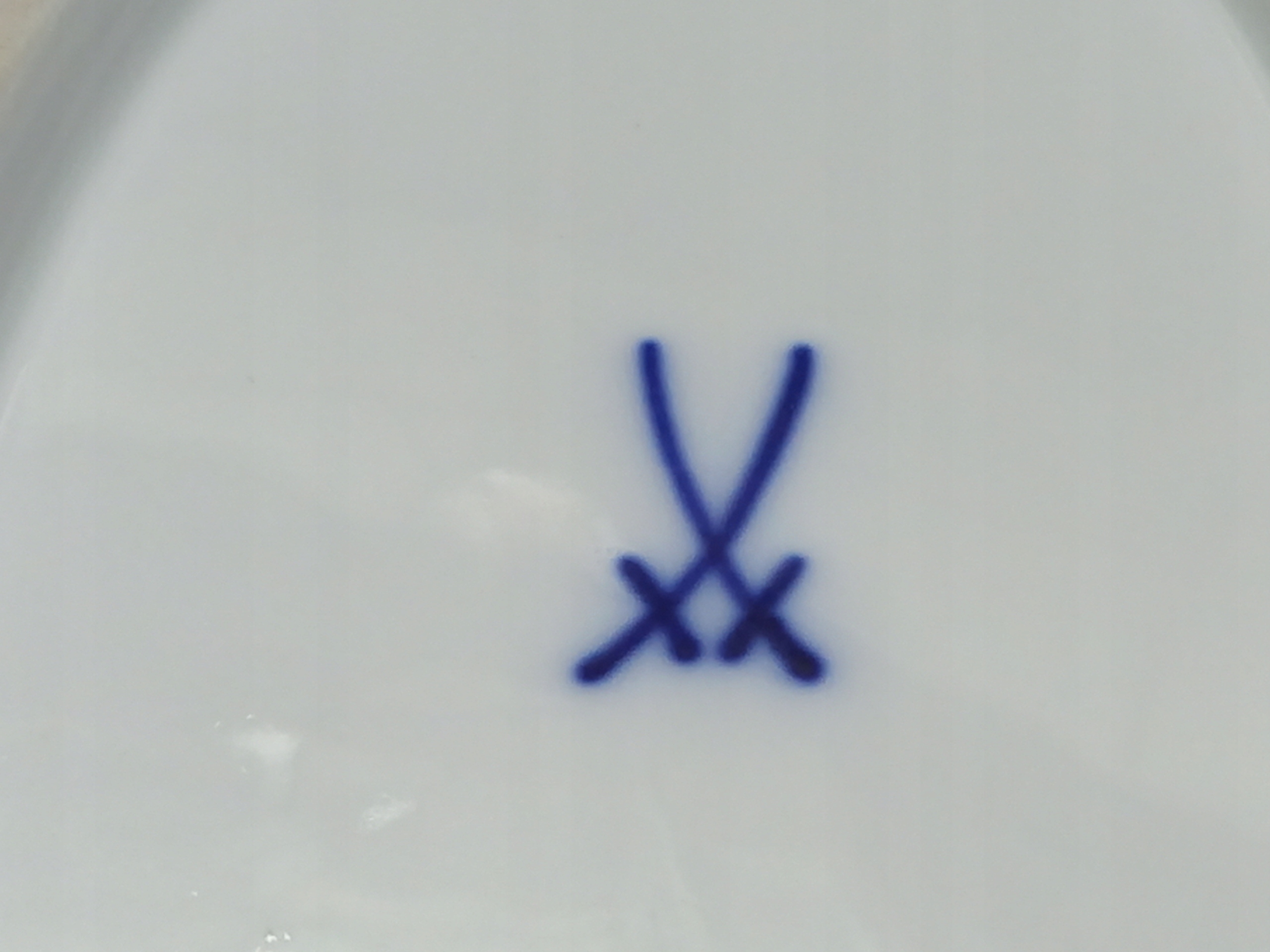 використовувався в 1953 - 1957 роках підглазурне покриття, кобальтово-блакитні мечі - без порізів/відбитків у порцеляновій масі: "333" нерозбірливо, позначено вручну золотою фарбою.
