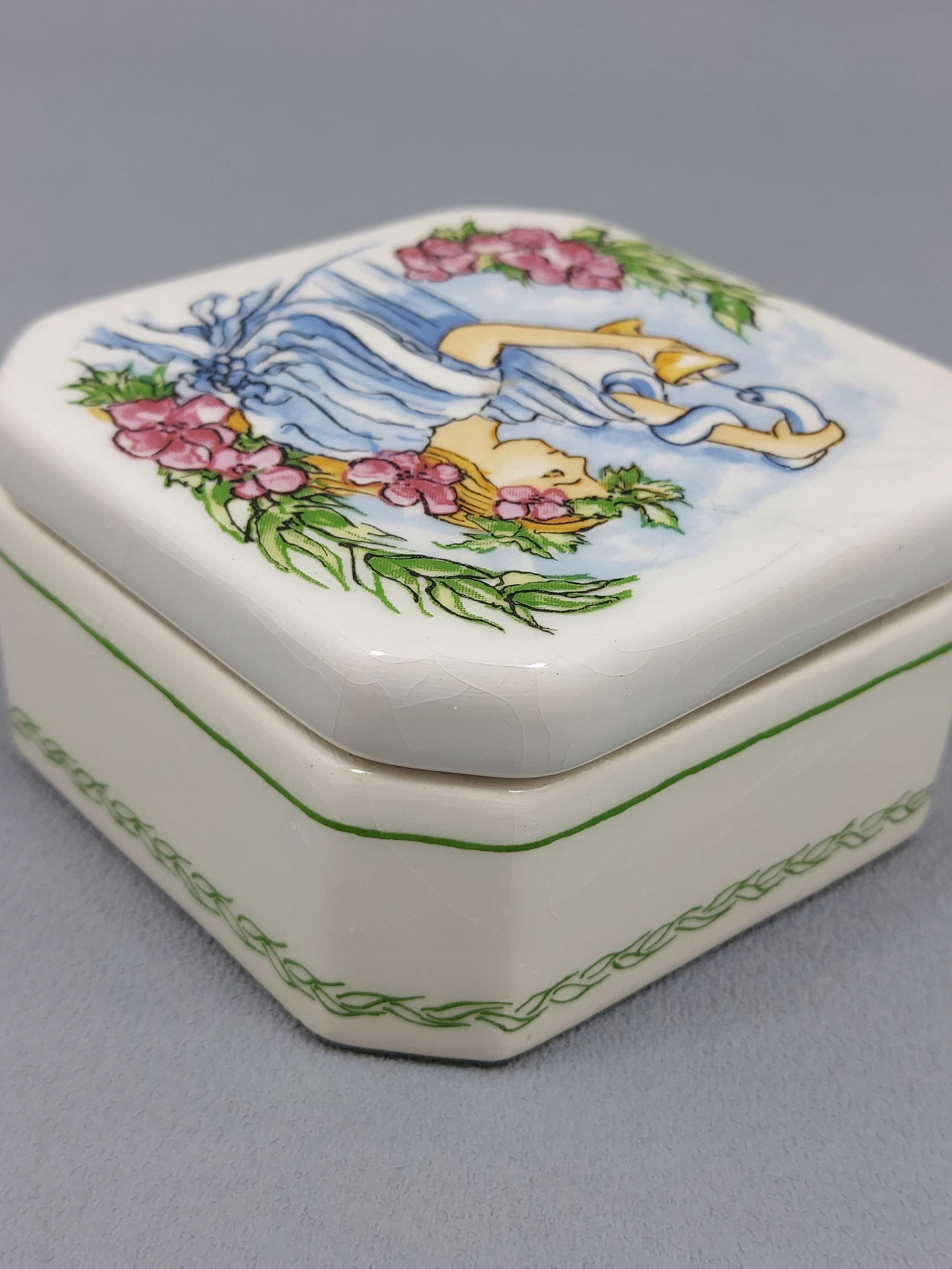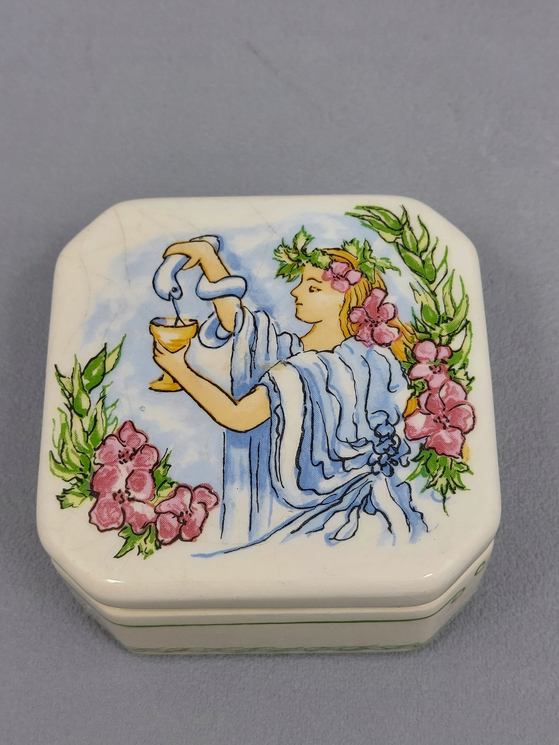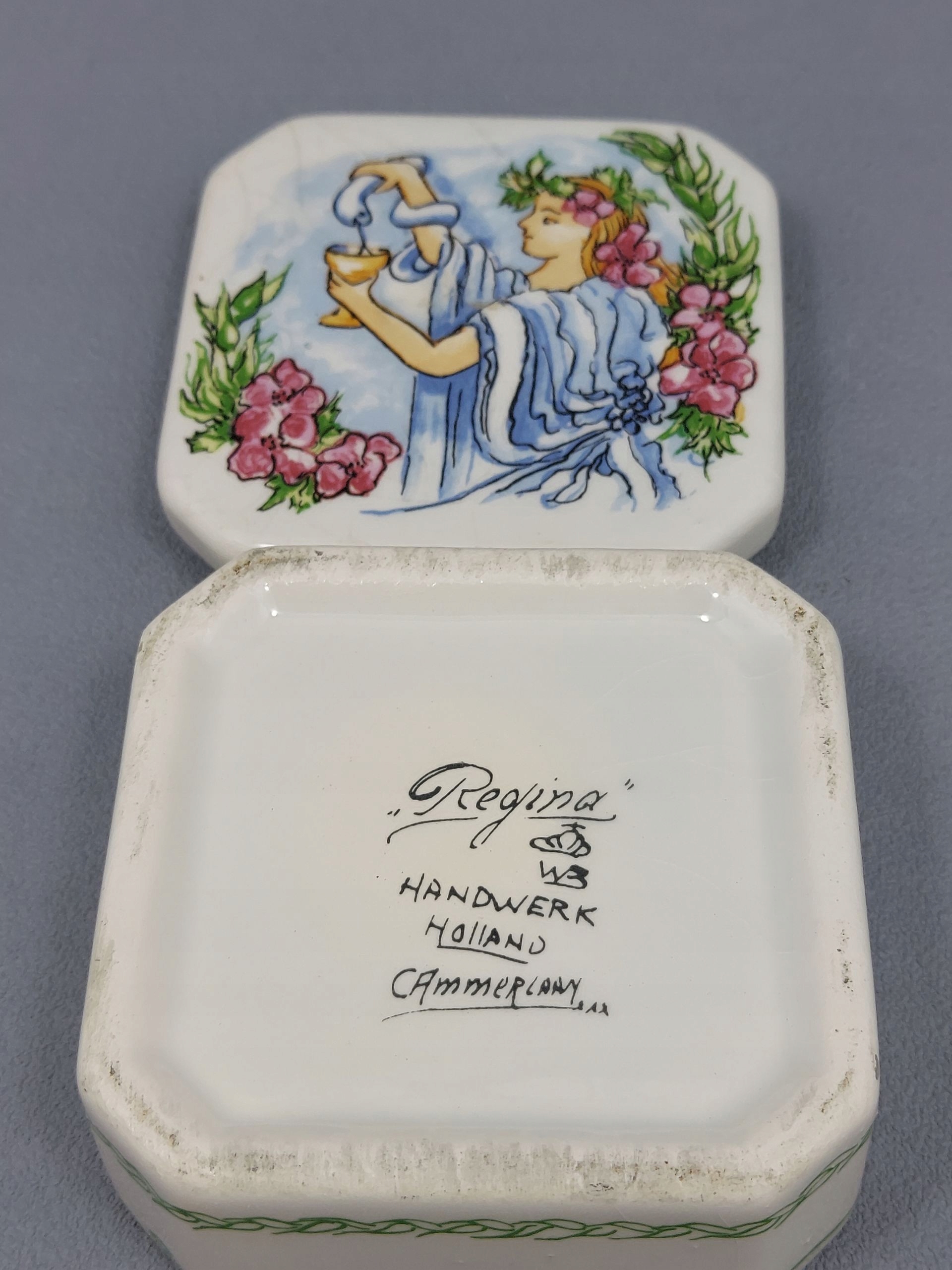 Зроблено з порцеляни, красиво прикрашене жінкою зі змією та чашкою, з підписаної Регіни Хендверк