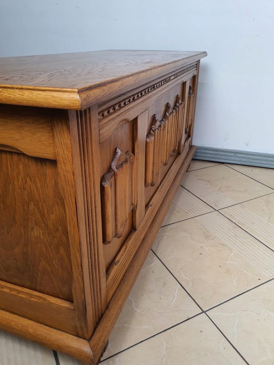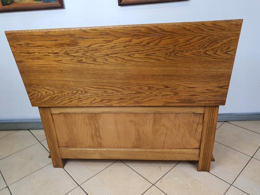 Предметом аукціону є різьблена скриня, виготовлена з дубового дерева та дубового шпону. Дуже стійка і міцна конструкція. Меблі в дуже хорошому стані, видно на фото, збережені, можна відразу заселяти в квартиру. Багажник акуратно оброблений і місткий, він ідеально впишеться в будь-яку кімнату в будинку.