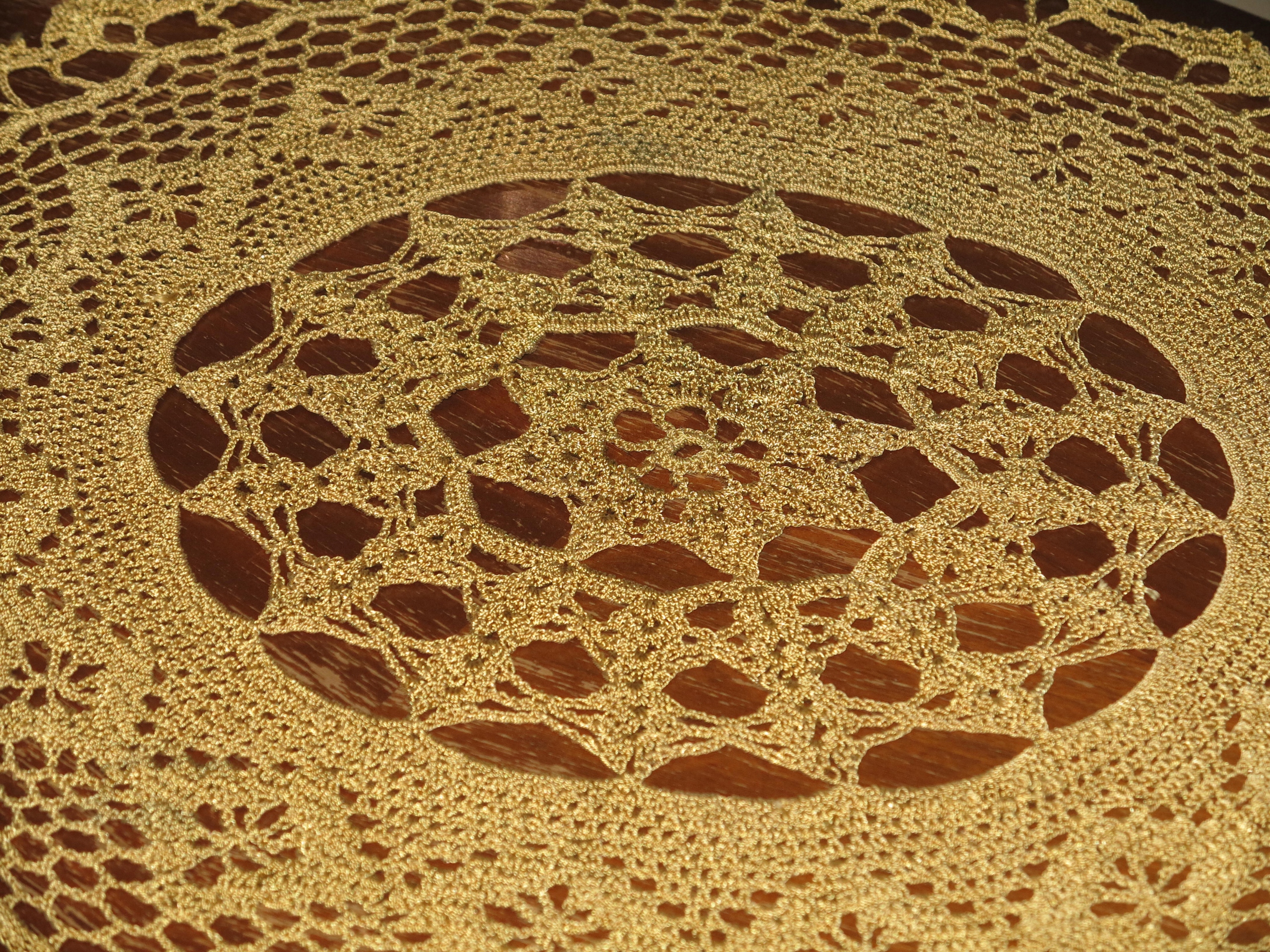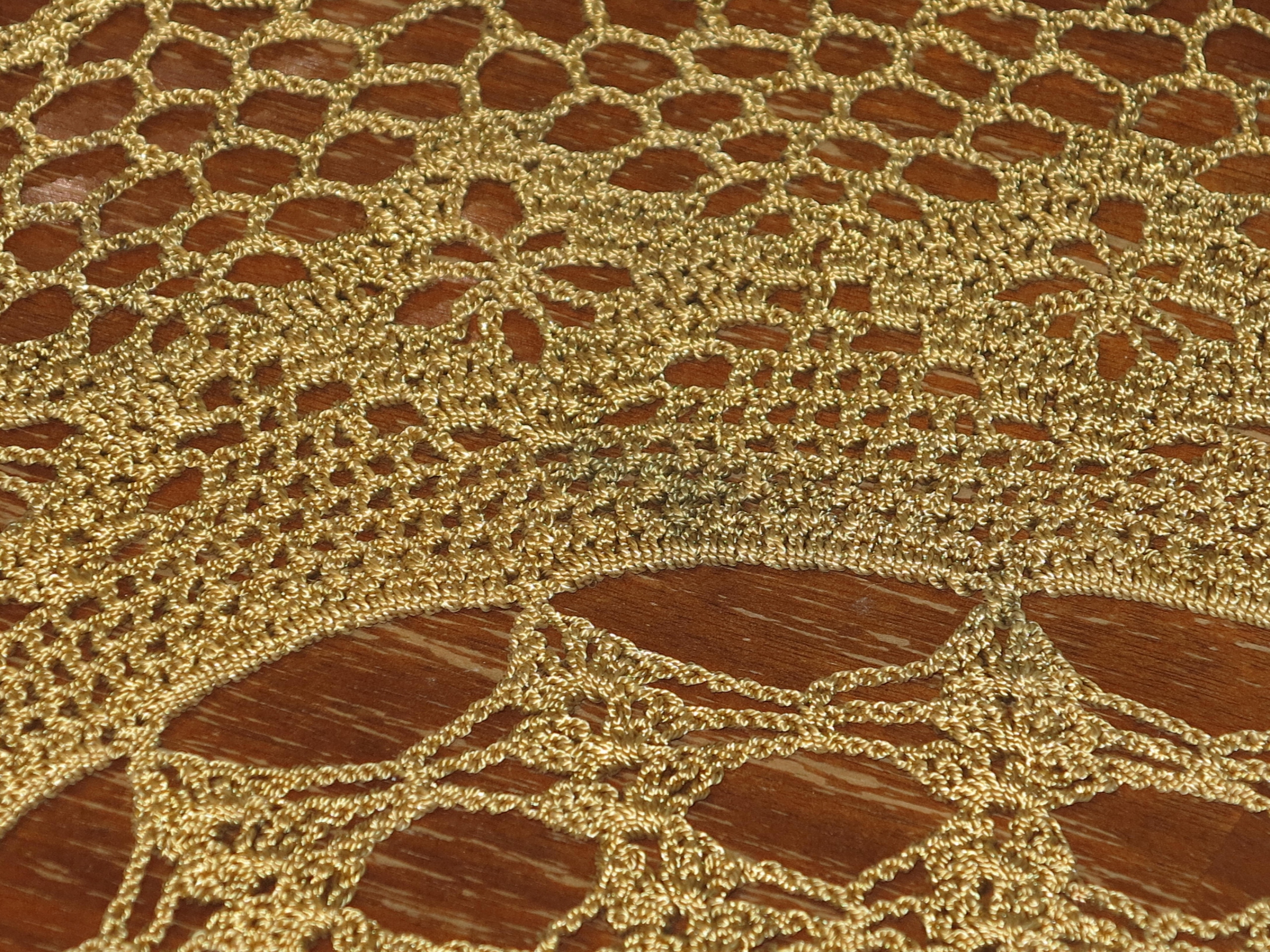 надзвичайно красивий великий круглий сервет, повністю ручний шовковий кордон і течій нитки. Колір старого золота. Галерея), з іншого боку, на жаль, видимі два додаткові- по-справжньому всі не помічають, Sewreta добре піддається, що можна побачити у малюнках- і ціна значно нижча