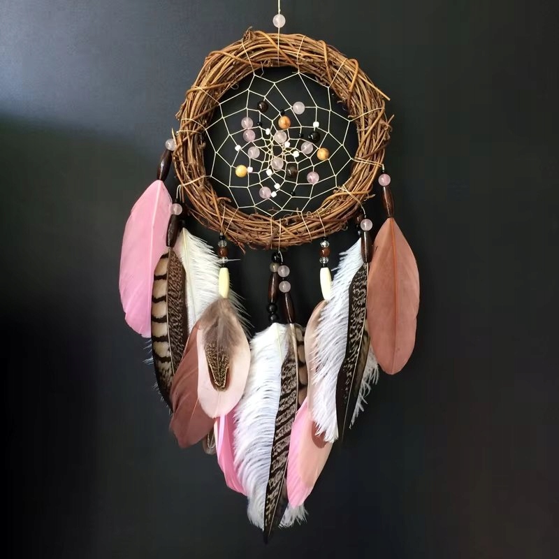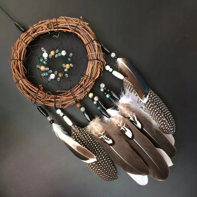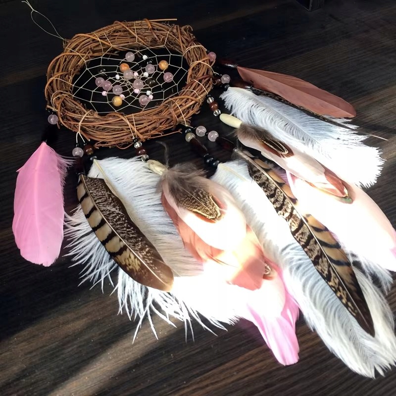 Відкрийте для себе унікальну красу східної естетики з цією східною мрією ручної роботи ловець. Виготовлений з натурального ротанга, прикрашений ніжними орнаментами та великими м’якими пір’їнками, він стане стильним доповненням до вашого інтер’єру.