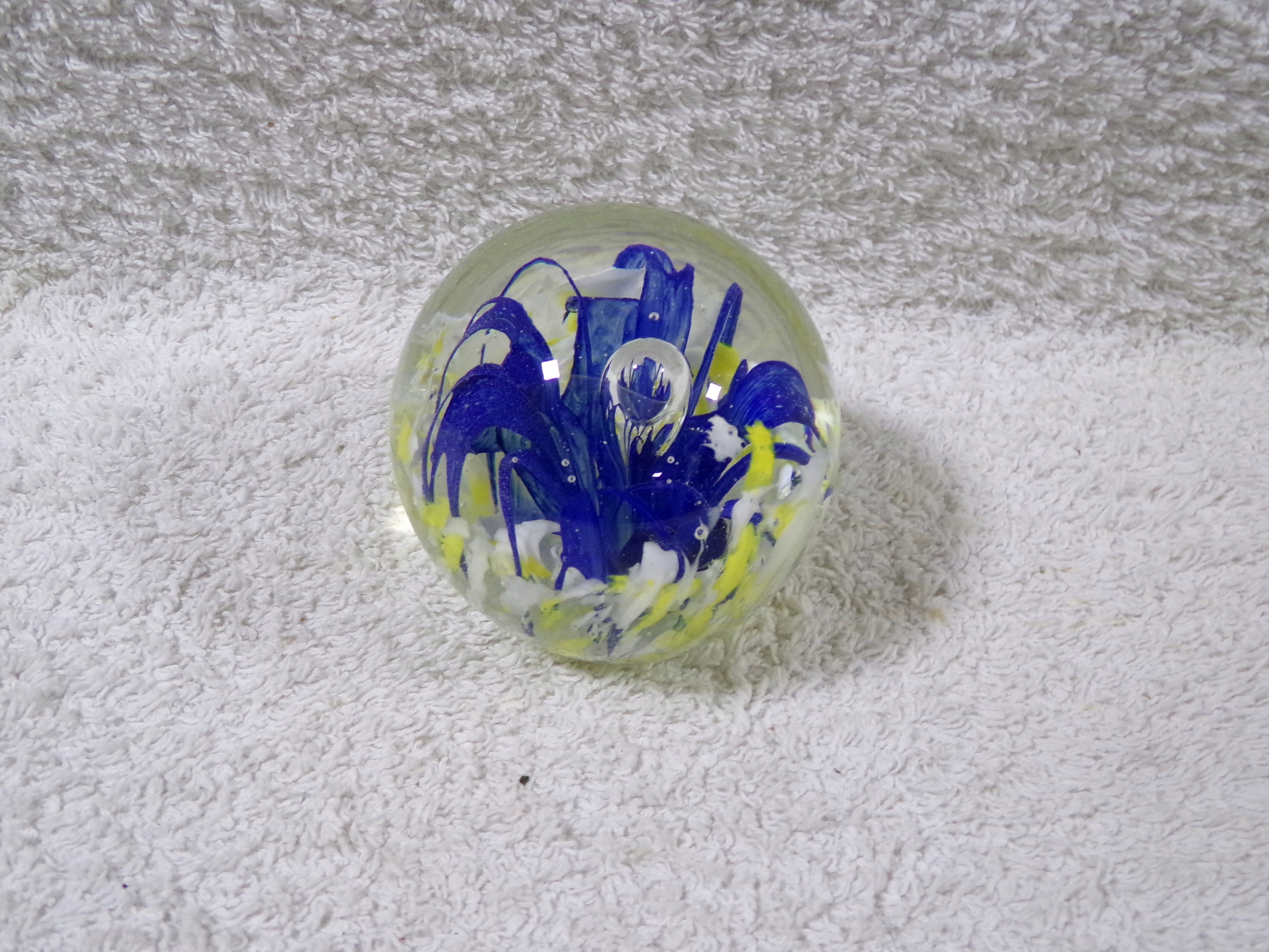 Прекрасний художній м'яч з висотою 6,5 см, діаметр 6 см, вагою 0,36 кг. Дуже хороший стан збережений, без пошкоджень.