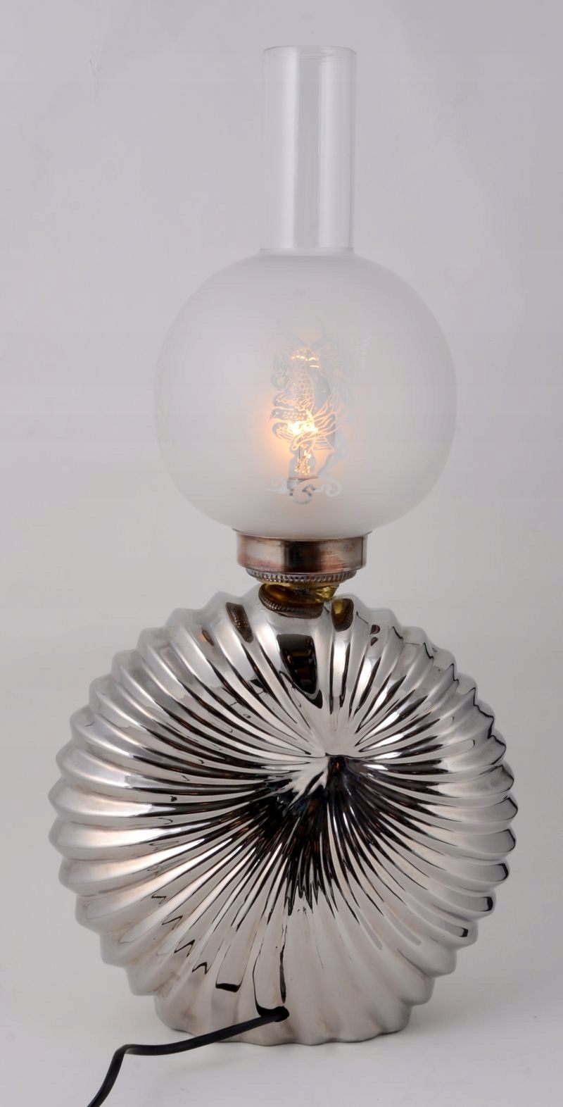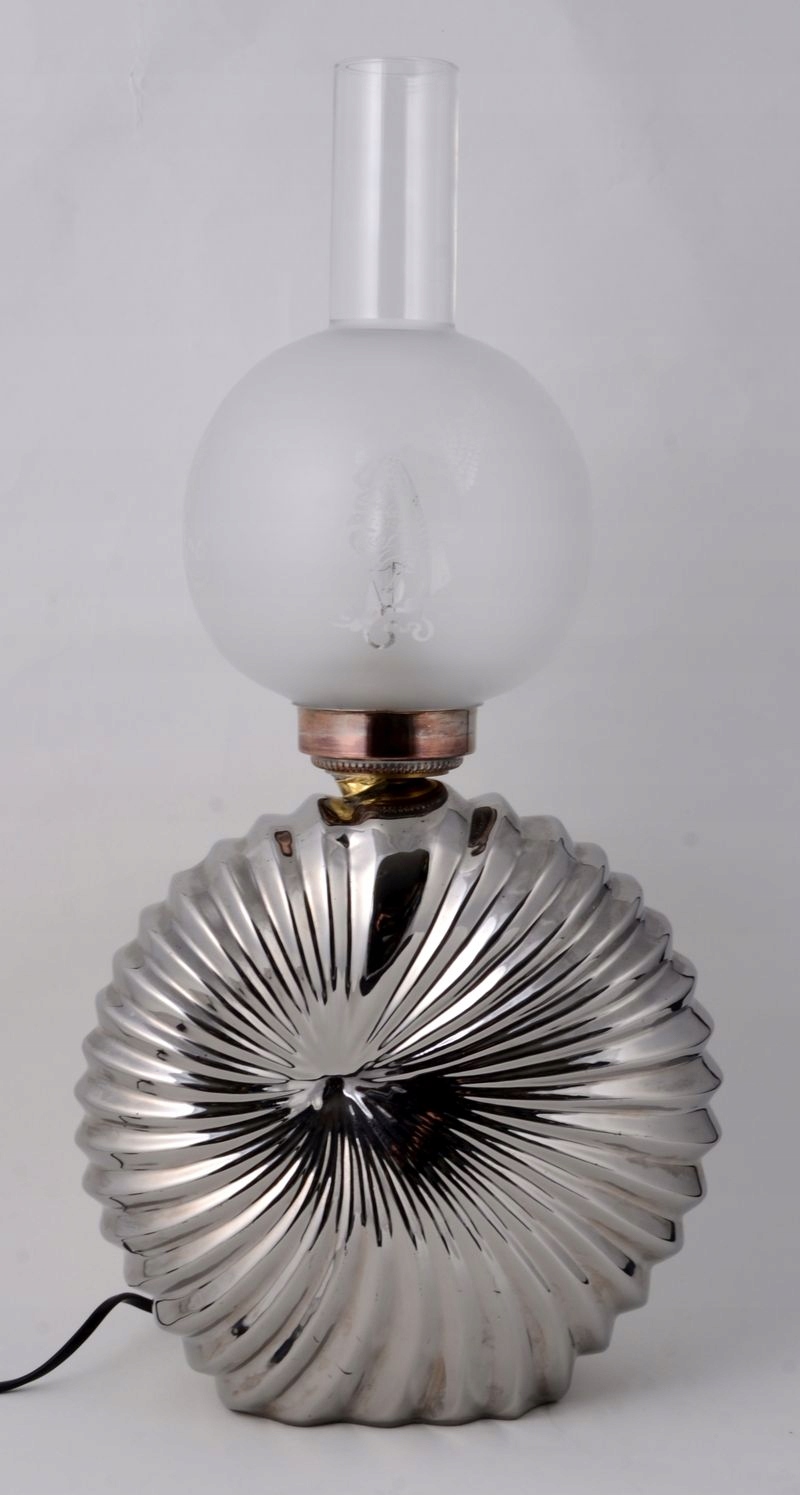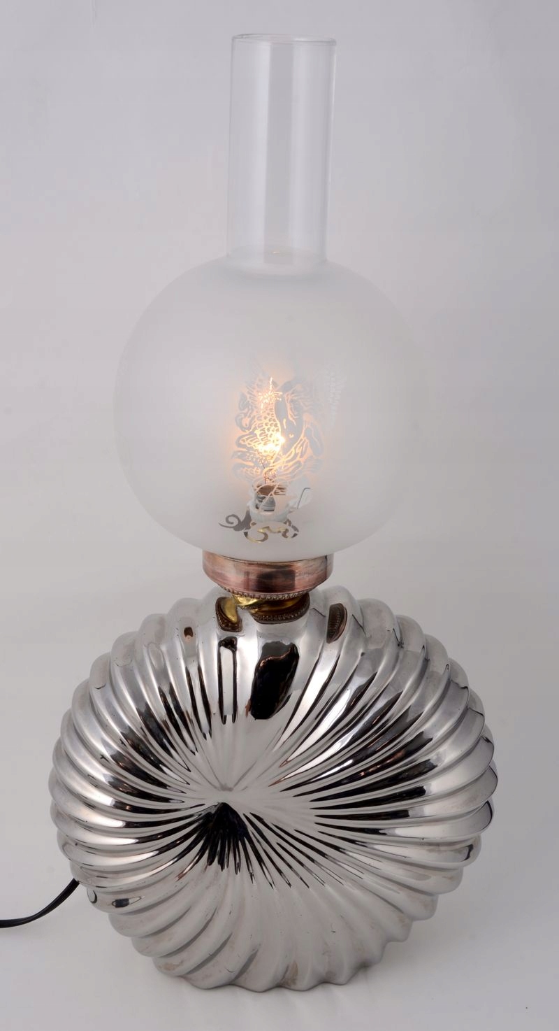 Красиві прикраси, майстерність і добротність роботи є гарантією якості та задоволення. Кожен найдрібніший елемент витончений, заслуговує на увагу надзвичайно оригінальний каркас світильника, виготовлений із поєднання металу та сріблястої порцеляни. Також заслуговує на увагу абажур-глобус із міцного скла зі спеціальним гравіюванням візерунків. Оригінальна форма порцелянового елемента у формі раковини зачарує кожного.
