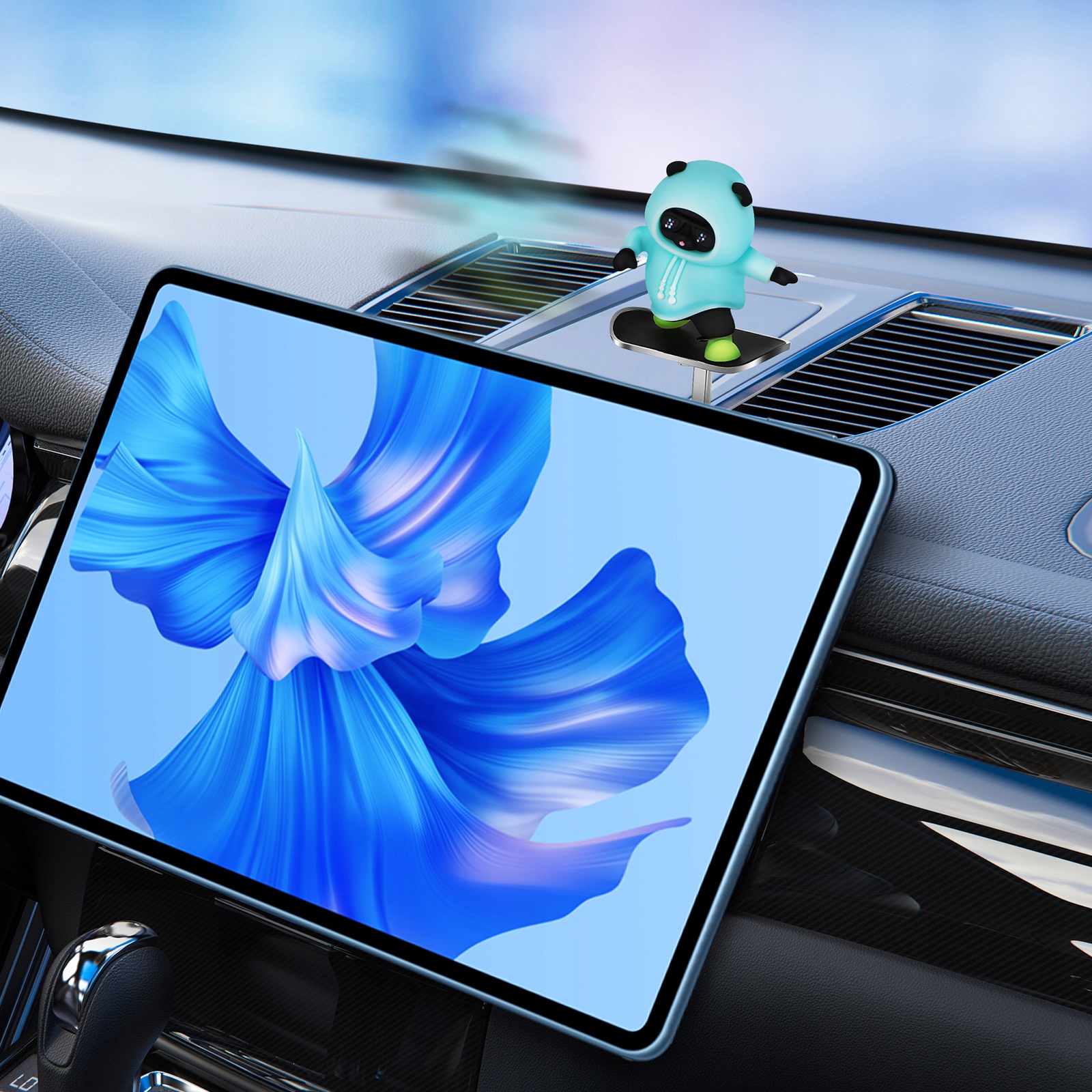 ✔, розроблений спеціально для екранів автомобілів, має грайливу статуетку плюшевого ведмедика на скейтборді, який обережно рухається разом із рухом автомобіля. Трохи примха на інформаційній панелі автомобіля, вдосконалюючи досвід водіння.