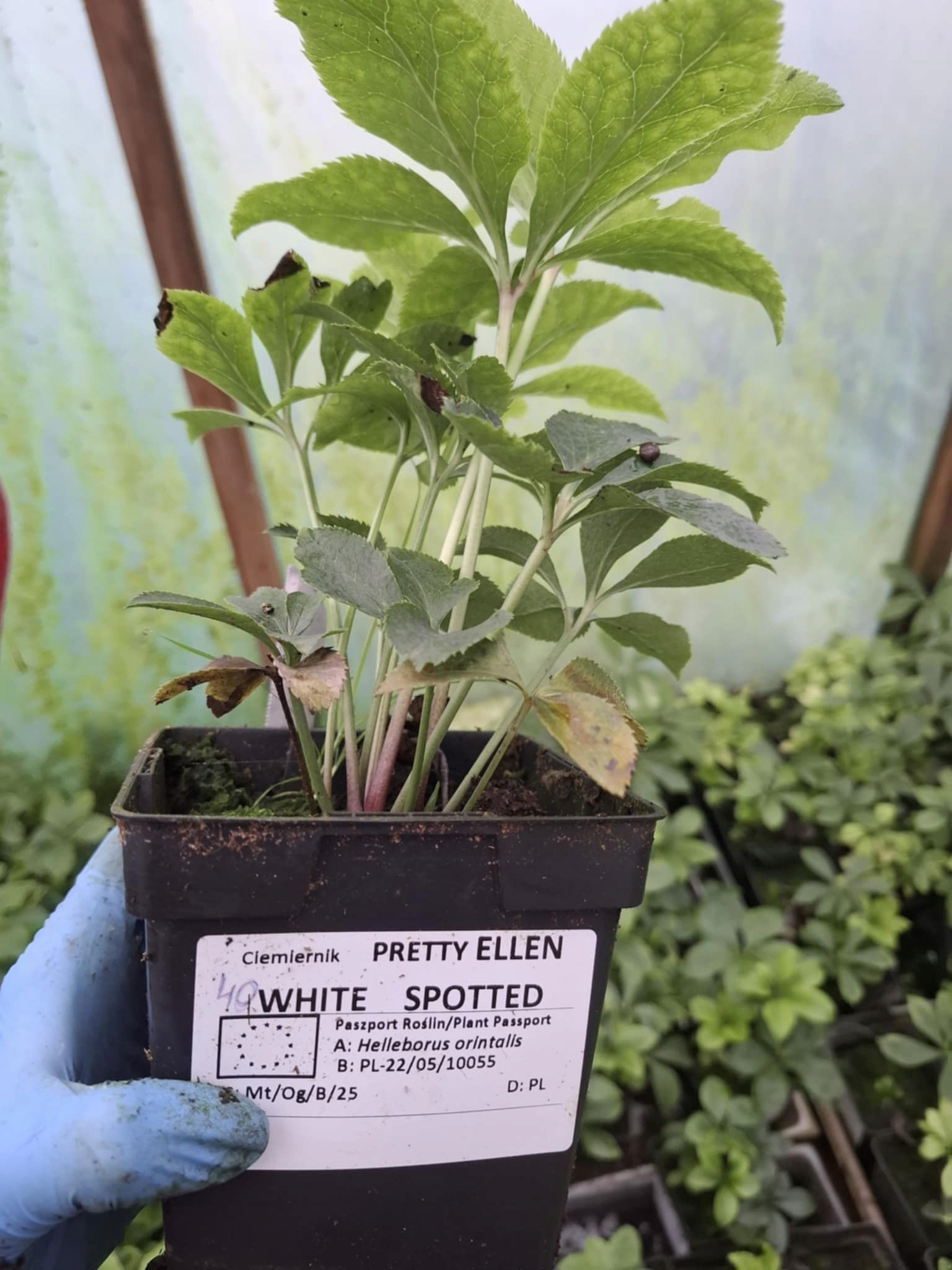 ToTwojOgrod запрошує вас придбати саджанці морозника Pretty Ellen White Spotted з поодинокими білими квітками з бордовими плямами посередині.