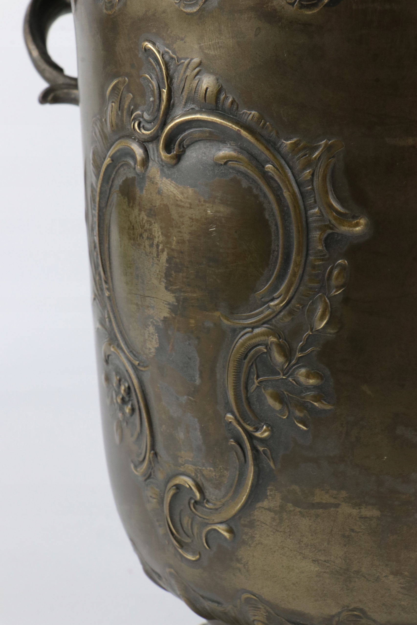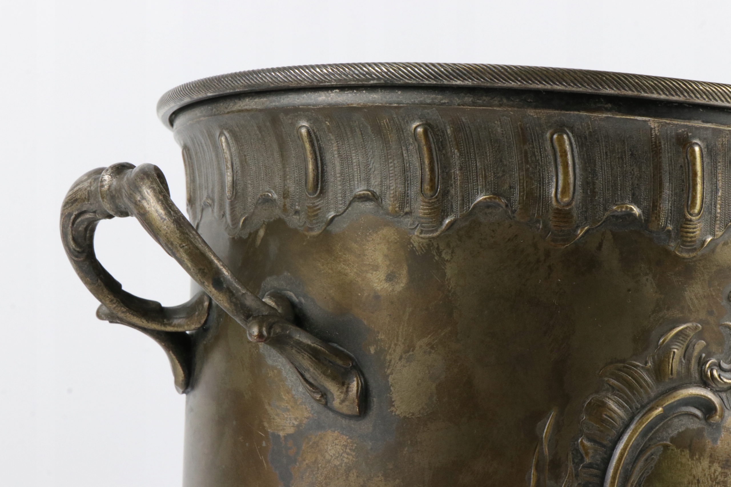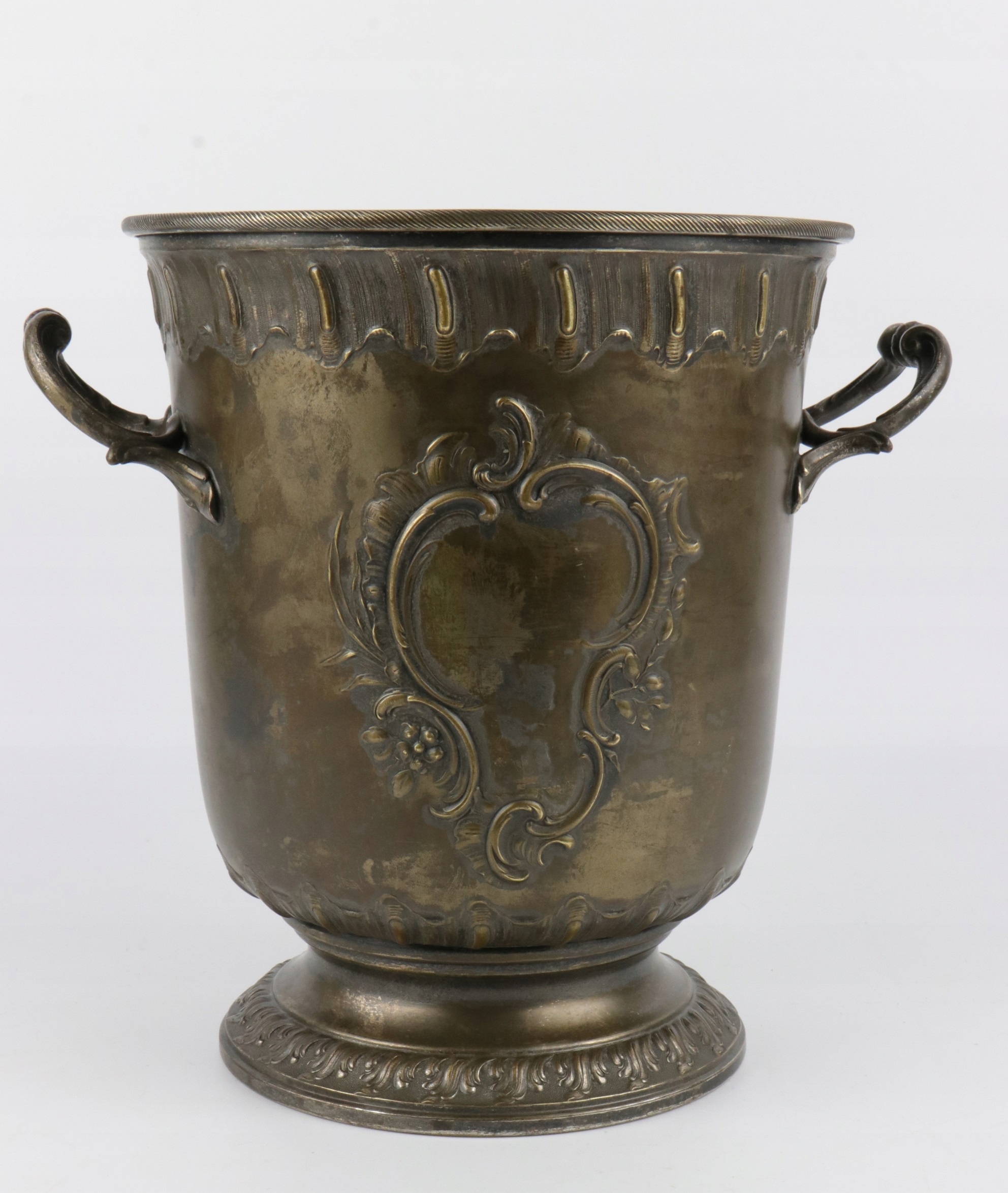 Кратер для охолодження шампанського вина в класичній формі урни в стилі рококо. Виріб виготовлено з посрібленої латуні. Предмет, позначений знаком WMF Württembergische Metallwarenfabrik