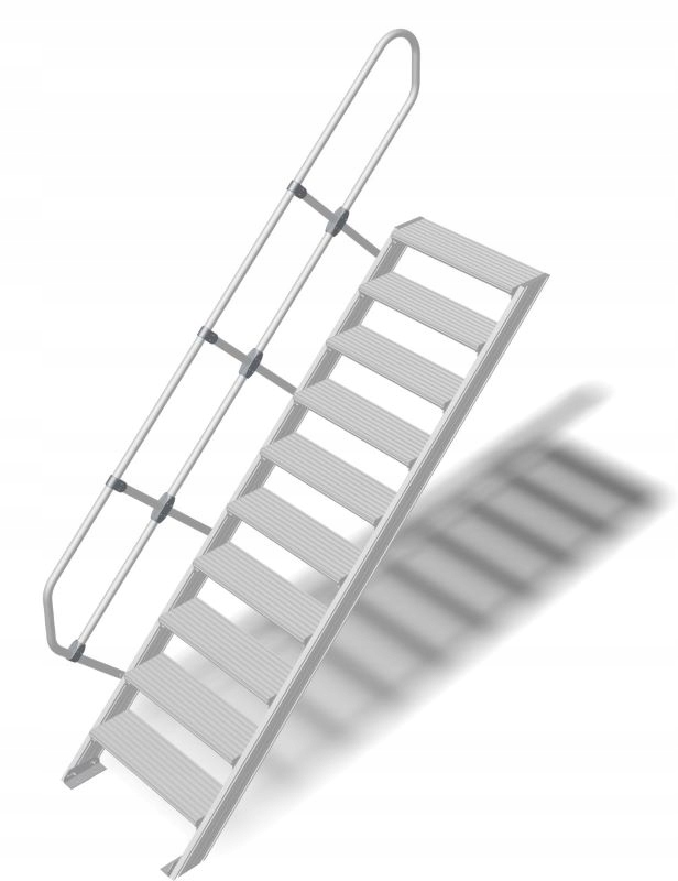 Довговічні стаціонарні алюмінієві сходи для індивідуальних рішень, наприклад, у промисловості чи транспорті. Виготовлено на основі стандарту PN EN ISO 14122.