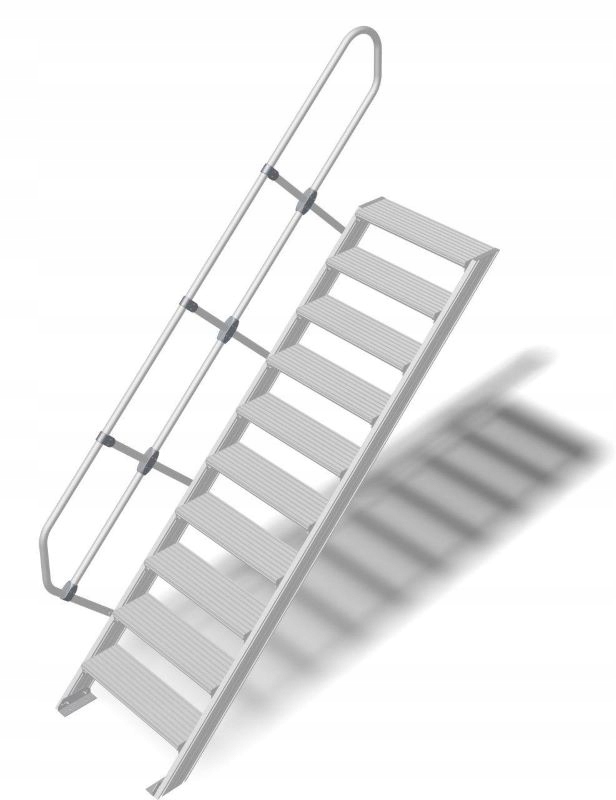 Довговічні стаціонарні алюмінієві сходи для індивідуальних рішень, наприклад, у промисловості чи транспорті. Виготовлено на основі стандарту PN EN ISO 14122.