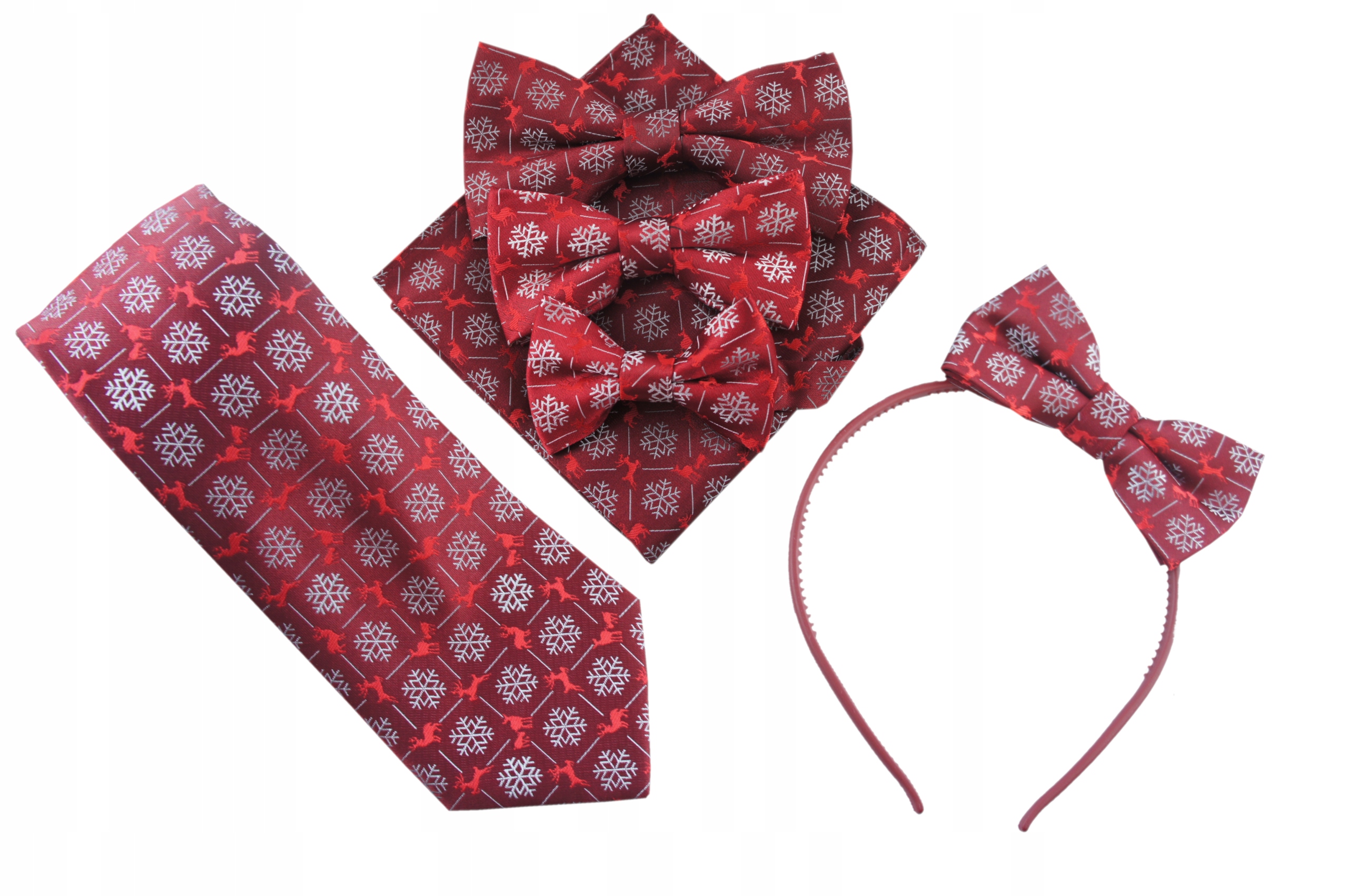 Краватка-метелик для тата і сина бордовий РІЗДВО 2 ШТ. ЗІ СНІЖИНКАМИ І ОЛЕНЯМИ