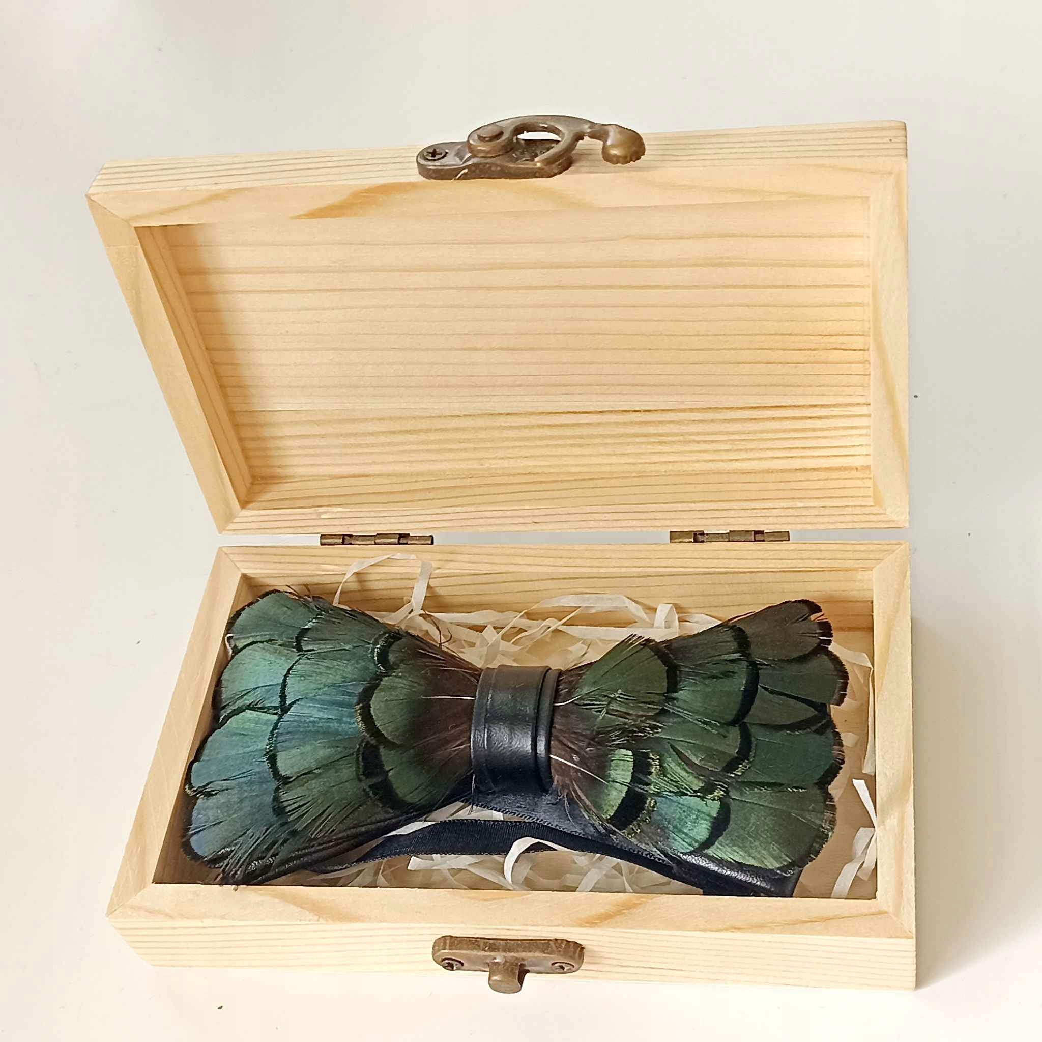 - Дерев'яна подарункова коробка. Яскраве, велике пір'я.