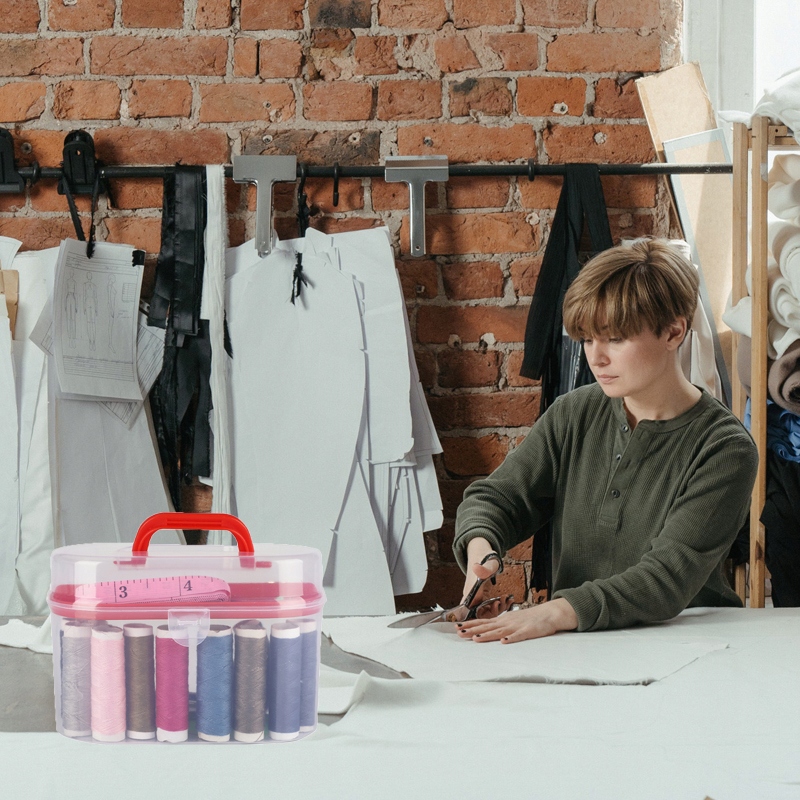 Набір для шиття в елегантній коробці. Ця річ ідеально підходить для швачок і людей, які займаються шиттям щодня. Він містить усі основні речі, необхідні для пошиття чи ремонту одягу. Коробка складається з двох частин - контейнера і знімного шару всередині. З ним ви можете пришити ґудзики до різного одягу тощо.