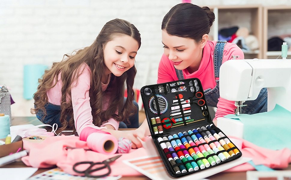 Всі необхідні аксесуари упаковані в елегантнийорганайзер. Повний швейний набір містить інструменти для базового ремонту, включно з швейними голками, ниткою, шпильками, >мірною стрічкою >, ґудзики, ножиці, пензлі, 43 кольорові нитки тощо. Набір для шиття зручний і поміщається в гаманець або дорожню сумку, тому ви завжди можете мати його під рукою, коли вам це знадобиться.