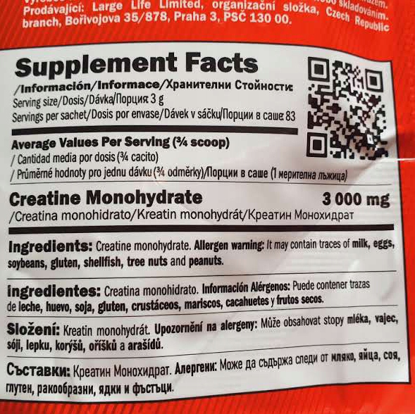 - 250 грам містять понад 80 порцій. Кожен містить 3 грами чистого креатину.