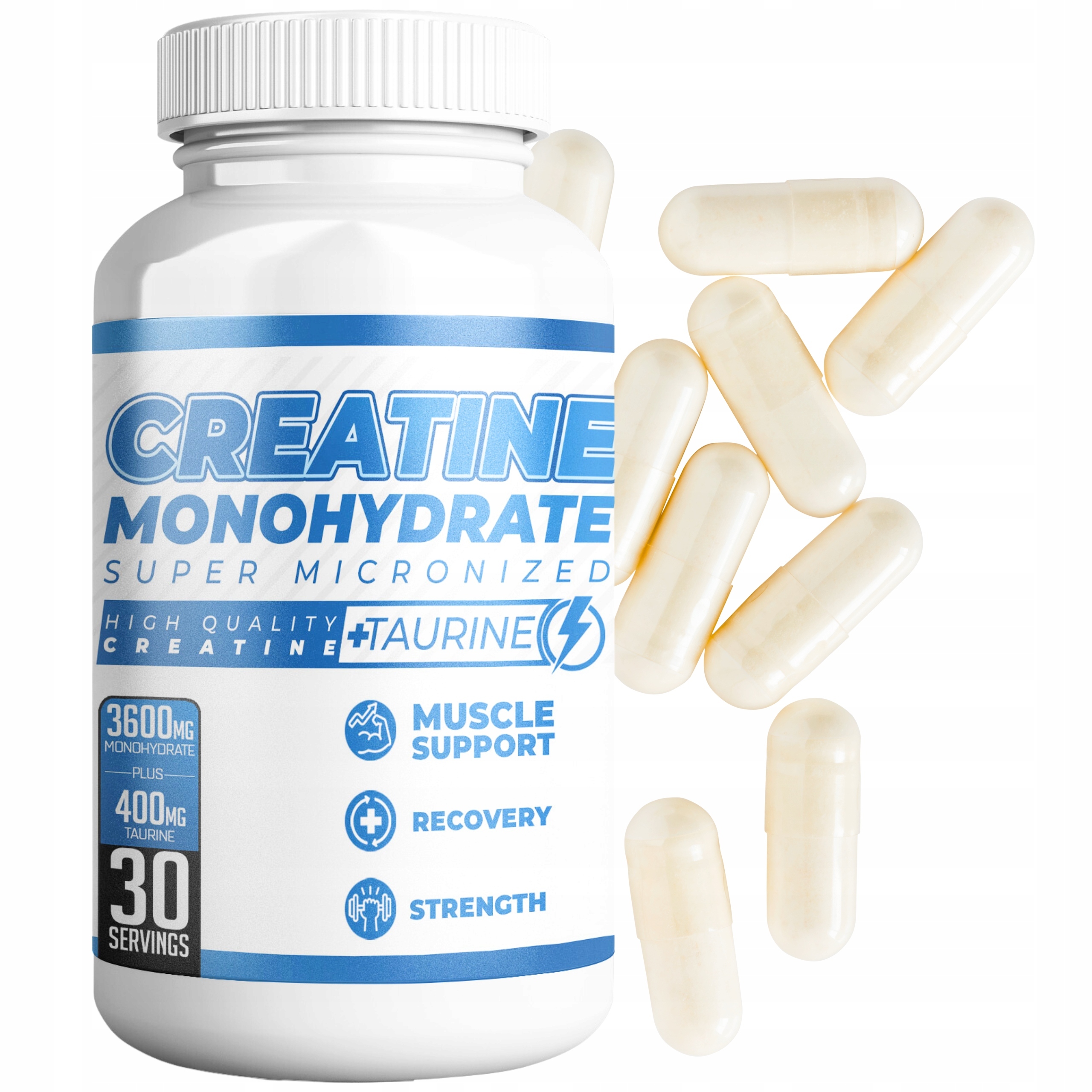 CambioLabs Creatine Monohydrate Дуже популярна, дуже ефективна спортивна добавка. Креатин - це речовина, яка природним чином виробляється організмом, це чудова добавка для бодібілдерів, важкоатлетів і спортсменів, які хочуть збільшити чисту м'язову масу, збільшити силу, витривалість і загальну фізичну форму. CambioLabs Creatine Monohydrate, тобто моногідрат креатину в капсулах складається з 100% чистого креатину моногідрату та таурину. Щоб максимізувати приріст маси та сили, рекомендується споживати велику кількість води під час прийому креатину, це дозволить підтримувати ваші м’язи добре зволоженими.