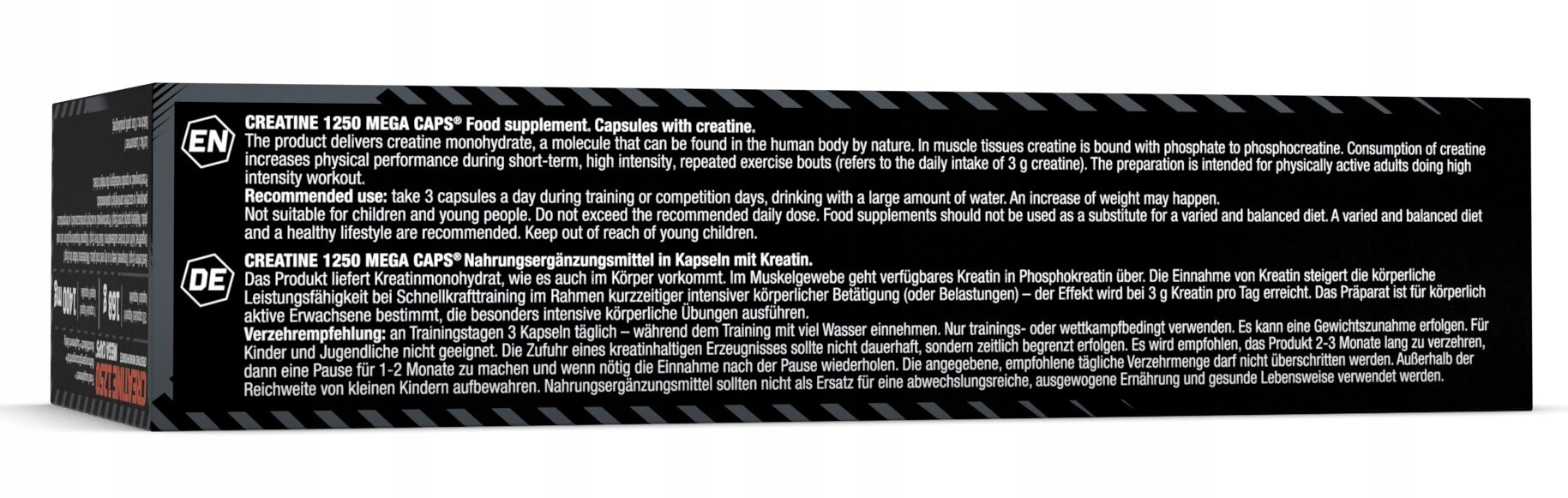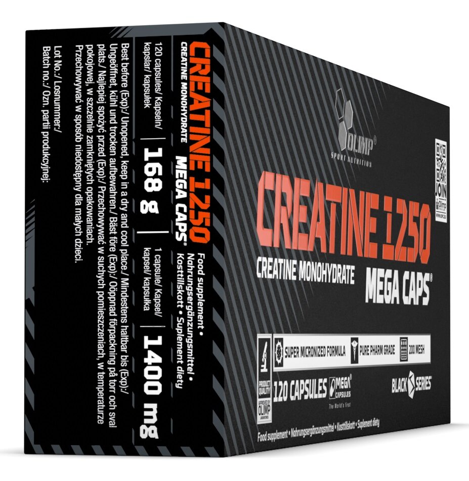 Creatine 1250 Mega Caps® - один з топових продуктів бренду Olimp Sport Nutrition, що містить високоякісний мікронізований креатин моногідрат, популярний серед людей, які тренуються. Кожна денна доза, рекомендована виробником, становить 4400 мг (4 капсули) чистого креатину! Велика доза креатину в кожній з надзвичайно містких капсул (1100 мг) забезпечується унікальною технологією Mega Caps®. Це істотно полегшує використання продукту, який рекомендується як новачкам, так і досвідченим любителям активного способу життя, які виконують фізичні вправи високої інтенсивності.