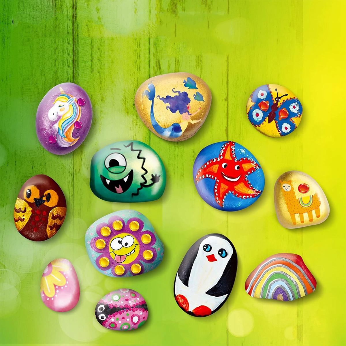✅ УНІКАЛЬНИЙ ДИЗАЙН ТА ПРОСТЕ КОРИСТУВАННЯ. Наш набір для малювання включає різноманітні фарби, наклейки, пензлики та інші матеріали для рукоділля для дітей! Набір для наскального малювання є чудовою альтернативою, оскільки він заохочує дітей/дівчат любити природу та дає їм відчуття творчості.