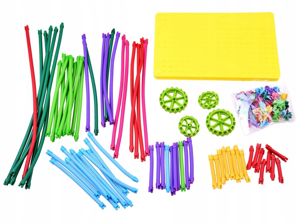 - Цей дивовижний набір гнучких блоків, так званих макаронів, є абсолютним хітом для кожного маленького конструктора. Набір містить 150 елементів, які нададуть безліч можливостей для створення різноманітних форм, структур і істот. У набір входять різнокольорові гнучкі пінопластові палички, які ідеально підходять для формування різних візерунків. Завдяки їм діти з трьох років можуть створювати унікальні конструкції, розвиваючи свою уяву та творчі здібності. Палички зберігають свою форму і можуть бути легко відновлені до початкової форми після гри. Графічні інструкції допоможуть вам створити цікаві візерунки, а єдині обмеження – ваша фантазія та доступні елементи. У набір входять поролонові палички різної довжини, пластикові колеса, пластикові конектори, поролоновий килимок та інструкція. Пластикова підставка має розміри 29 х 19 х 1 см, а довжина локшини 40 см, 30 см, 25 см, 20 см, 15 см, 10 см, 7 см, 5 см. Все упаковано в барвисту упаковку, ідеально підходить для подарунка. Цей набір - унікальна можливість розвивати у дітей творчі здібності та спритність рук.