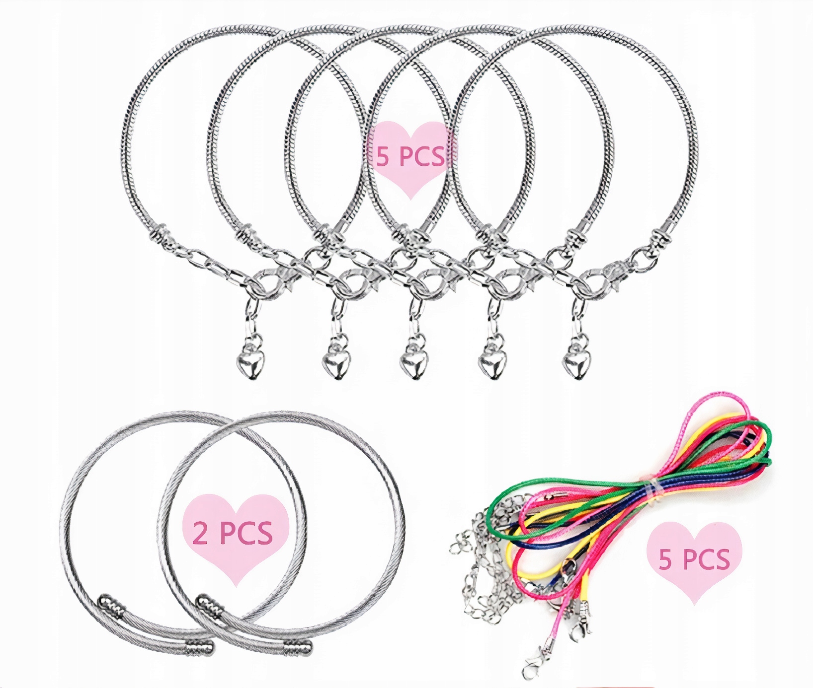 - 5 шт браслетів із сердечком і застібкою