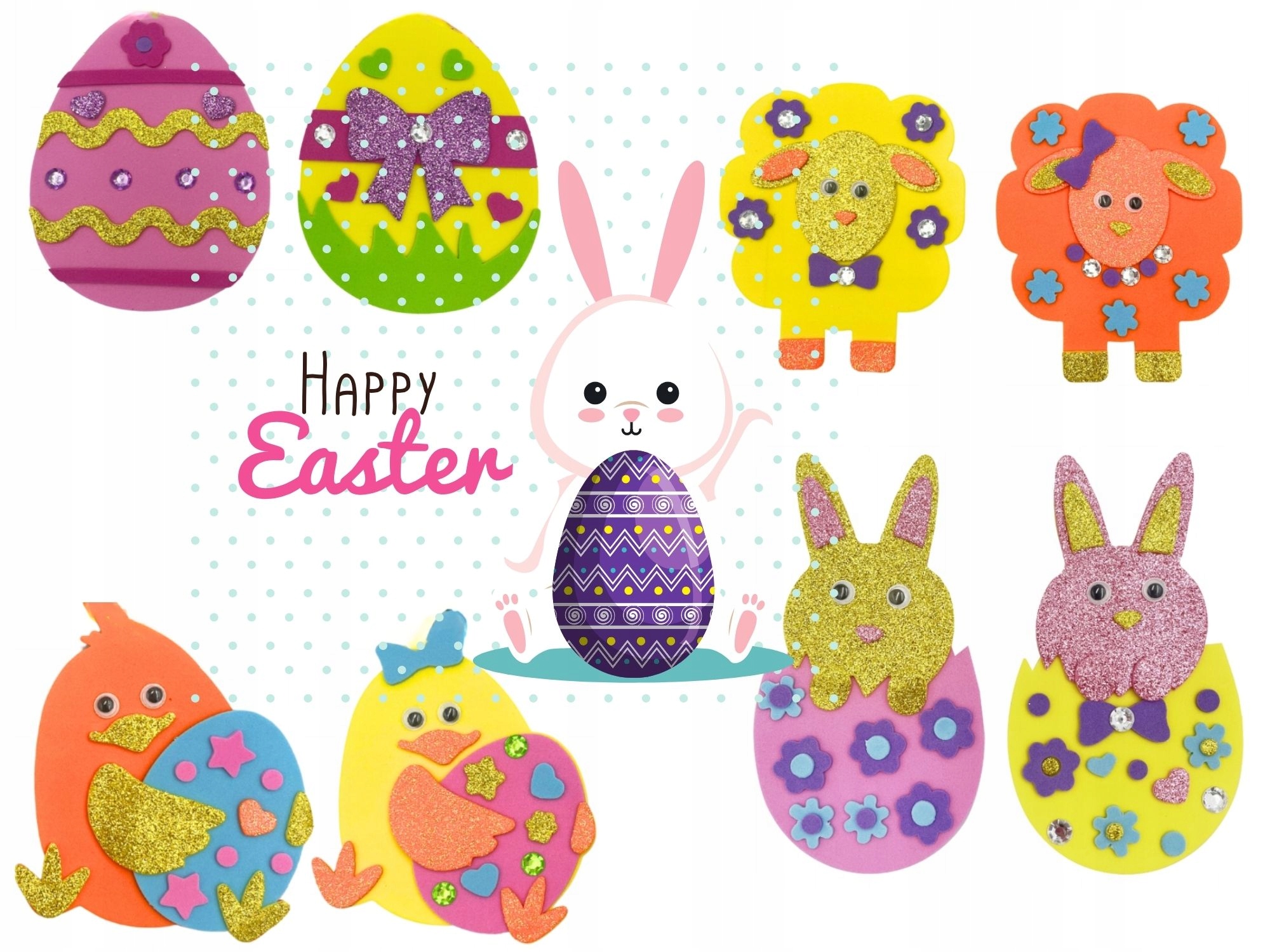 КРЕАТИВНИЙ ПАСХАЛЬНИЙ НАБІР НАЛІПКИ З ПІНОМАШИНИ ФІГУРКИ ЗАЙЧИКА ПОДАРУНКОВИЙ МІКС