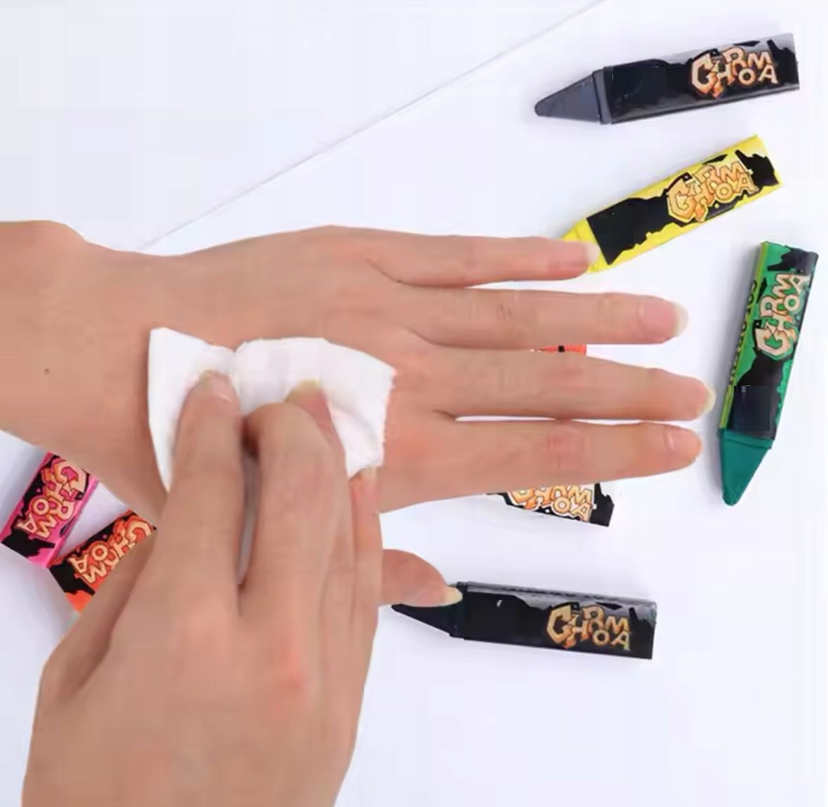 Високоякісна формула олівців гарантує, що яскраві кольори легко наносяться, не тьмяніють і не розмазуються. Олівці для обличчя, які миються, можна легко видалити за допомогою м’якого мила та води або вологих серветок, що робить очищення швидким і зручним.