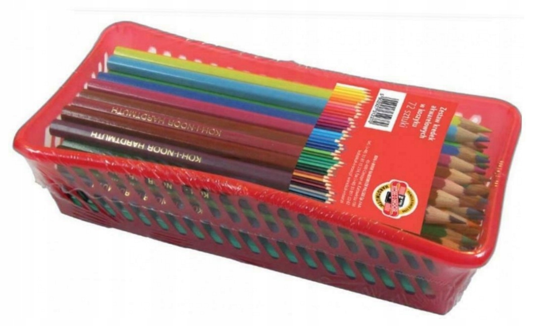 Набір із 72 кольорових олівців у зручному кошику. Крейда використовується для виконання класичних малюнків, а також для досягнення акварельного ефекту. Після нанесення води пензликом малюнок можна розмити, отримуючи ефект картини, намальованої хаотично набитими фарбами.