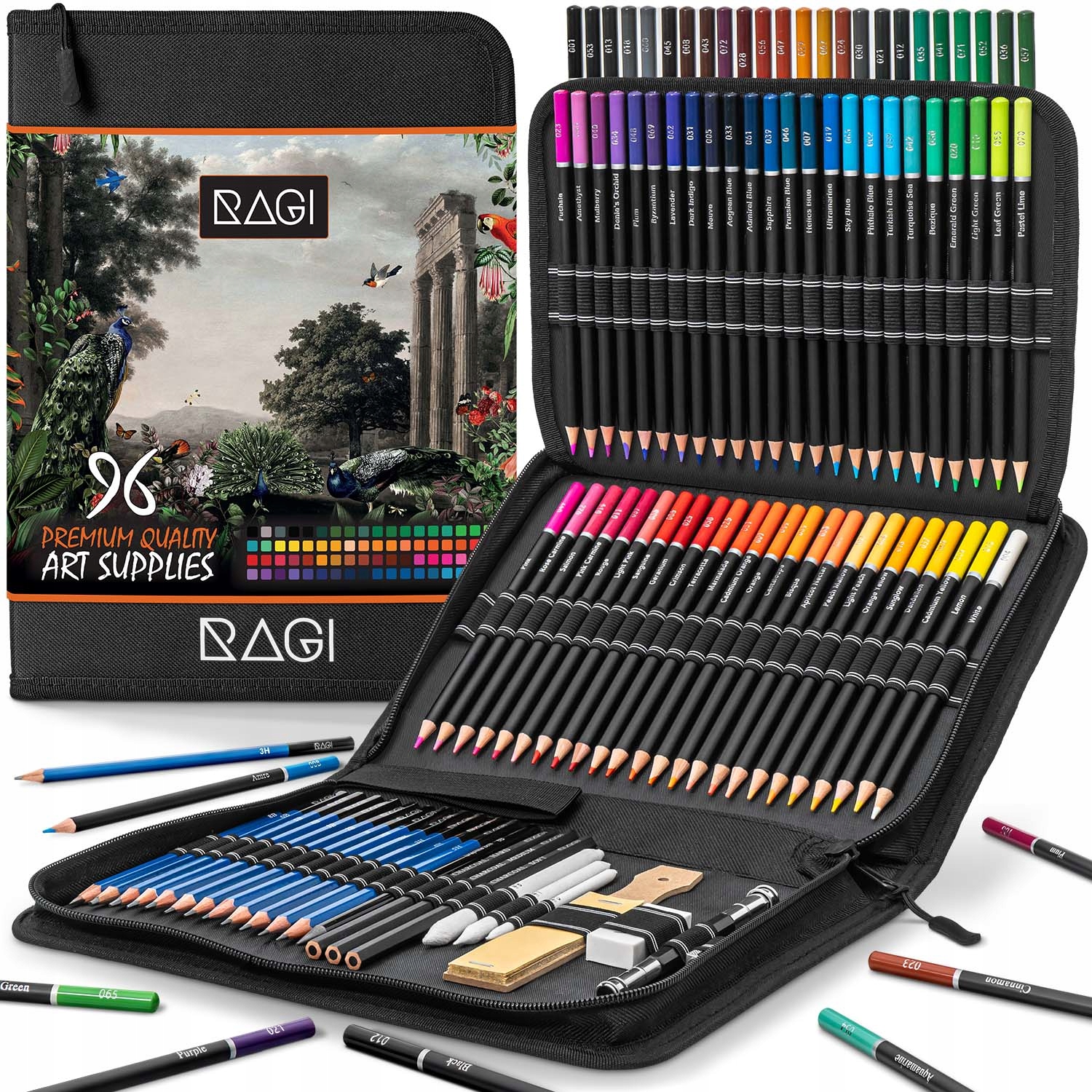 ПРОФЕСІЙНИЙ НАБІР З 96 ХУДОЖНІХ ОЛІВЦІВ ДВОКРАПОК ДЛЯ СКРІКУВАННЯ ТА МАЛЮВАННЯ