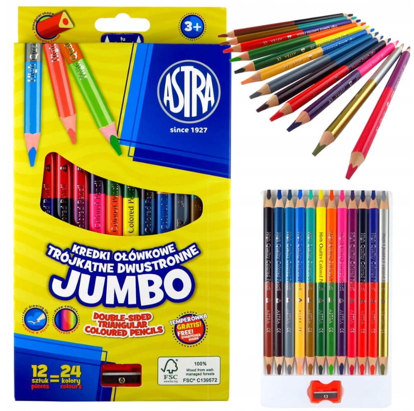 Просматривая «Карандаши Astra Jumbo двусторонние треугольные.», вы можете быть уверены, что данный товар из каталога «Карандаши» будет доставлен из Польши и проверен на целостность. В цене товара, указанной на сайте, учтена доставка из Польши. Внимание!!! Товары для Евросоюза, согласно законодательству стран Евросоюза, могут отличаться упаковкой или наполнением.