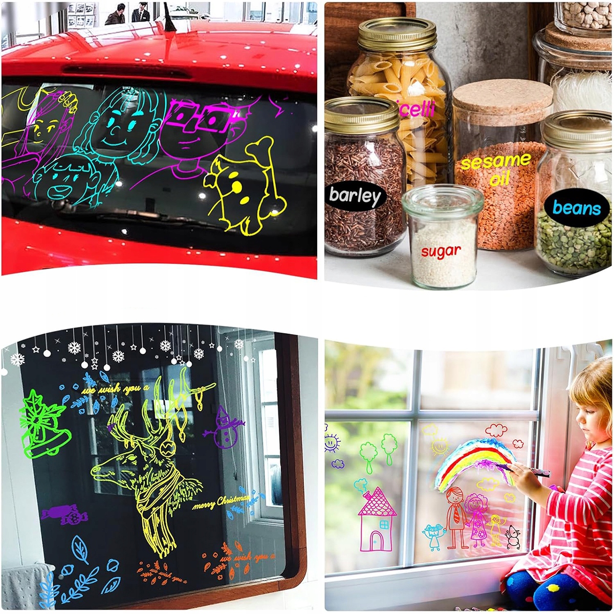 【Крейдяні маркери, які можна мити】Ці рідкі крейдяні маркери можна використовувати на всіх непористих поверхнях, включаючи дошки, скло, вікна, самоклеючий папір, наклейки, дошки, пластик, метал, дошки для меню, автоскла, глянцеві дошки, дзеркала та багато іншого. Ви можете повністю та легко видалити крейдяні маркери, які можна мити, вологим папером або тканиною, не залишаючи смуг чи смуг.