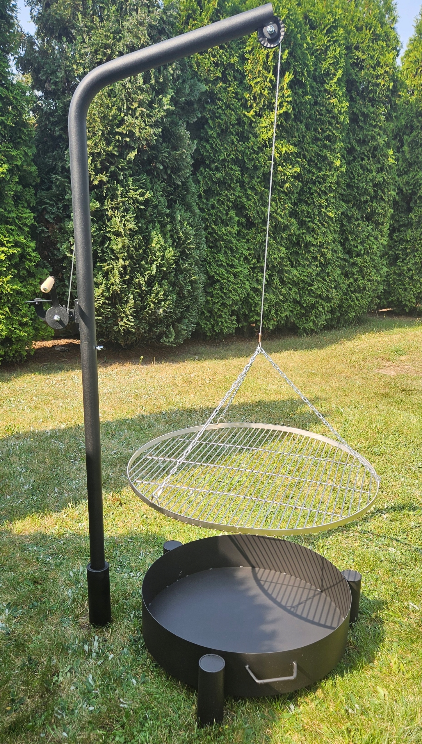 Суцільний і функціональний гриль крана буде ідеальним, коли гриль на свіжому повітрі в колі сім'ї чи друзів. І решітка, і котл можуть бути вивішені на бумі. Гриль складений наполовину , що полегшує зберігати та транспортувати. 4