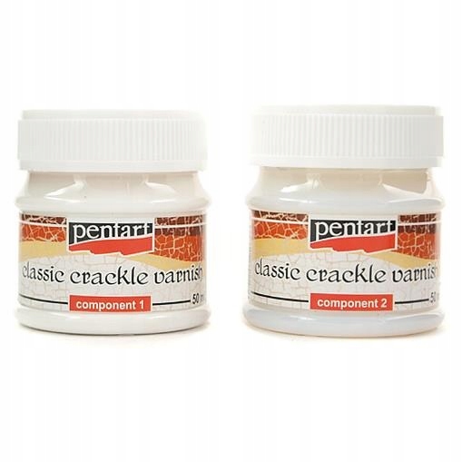 ПЕНТАРТ-КРЕКЛ КЛАСИК 50 мл 2-КОМП. Для усунення поверхневих тріщин використовується лак для старіння, який висихає прозорим і створює водонепроникну поверхню. На поверхню, що декорується, нанесіть перший шар лаку (1/2), а після його висихання наступний (2/2).