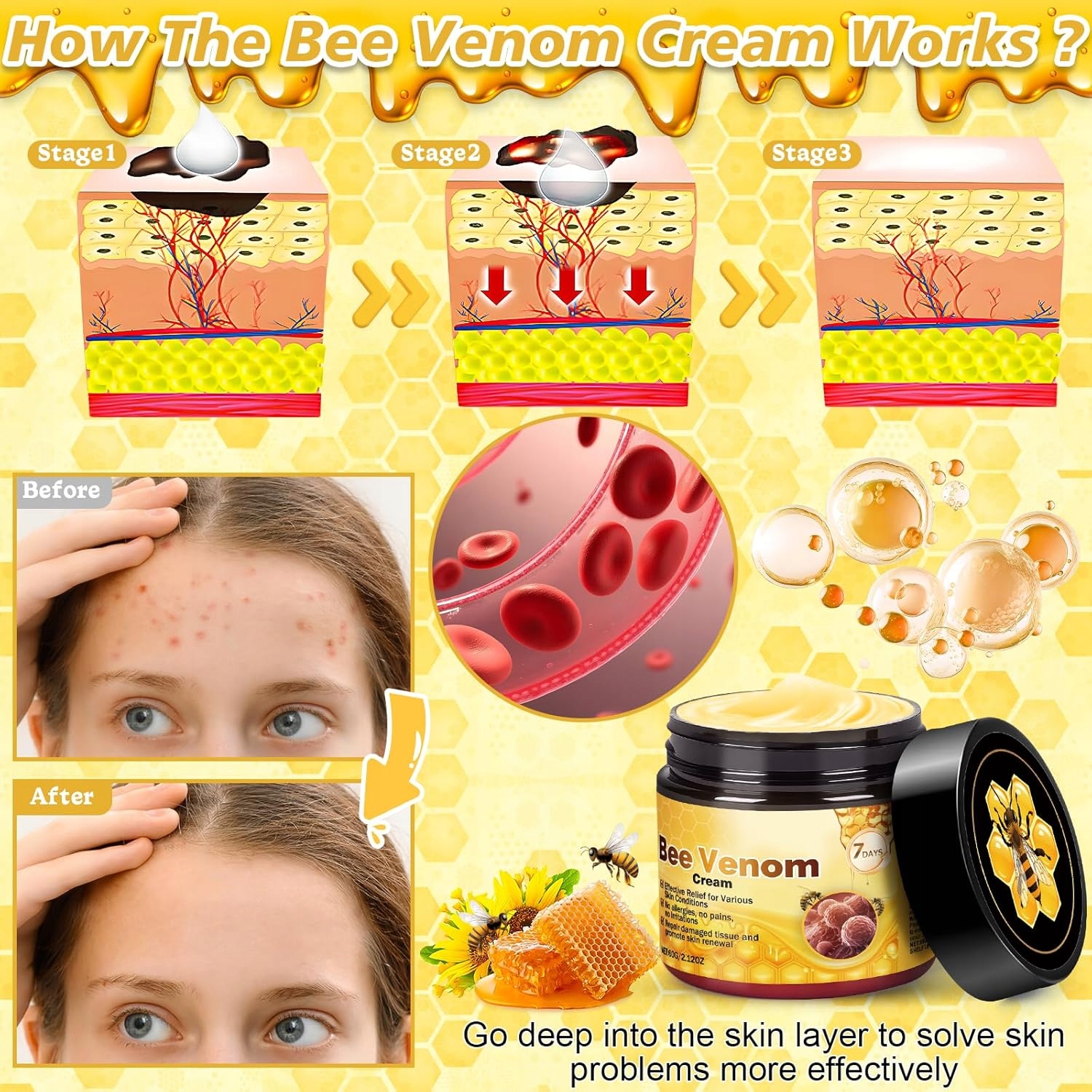 - ✅【Універсальний крем з бджолиною отрутою для всіх типів шкіри】Крем з бджолиною отрутою Підходить для сухої, комбінованої та чутливої шкіри, цей універсальний крем з бджолиною отрутою можна використовувати як основу для денного макіяжу або нічного відновлення, що робить догляд за шкірою легким і зручним у вашій щоденній рутині. рутина.