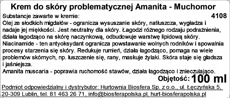 Оплачивая «КРЕМ ДЛЯ ПРОБЛЕМНОЇ ШКІРИ МУХОМОР 100», вы можете быть уверены, что данное изделие из каталога «Кремы и мази» будет доставлено из Польши и проверено на целостность. В цене товара, указанной на сайте, учтена доставка из Польши. Внимание!!! Товары для Евросоюза, согласно законодательству стран Евросоюза, могут отличаться упаковкой или наполнением.
