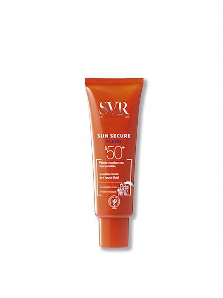 SUN SECURE Fluide від SVR. Крем для обличчя. Підходить для всіх типів шкіри, включаючи гіперчутливу до сонця. Його можуть використовувати дорослі, діти та немовлята. Має легку напіврідку консистенцію з нежирним і непомітним фінішним покриттям. Чудово розподіляється, швидко вбирається і не залишає смуг. Він має фільтр SPF50, який ефективно захищає шкіру від UVA та UVB сонячних променів, а також від видимого світла та ІЧ (інфрачервоного) випромінювання. Крем має літній аромат і стійкий до води та поту, що робить його незамінним супутником у літні дні. Крем випускається в тубі об'ємом 50 мл.